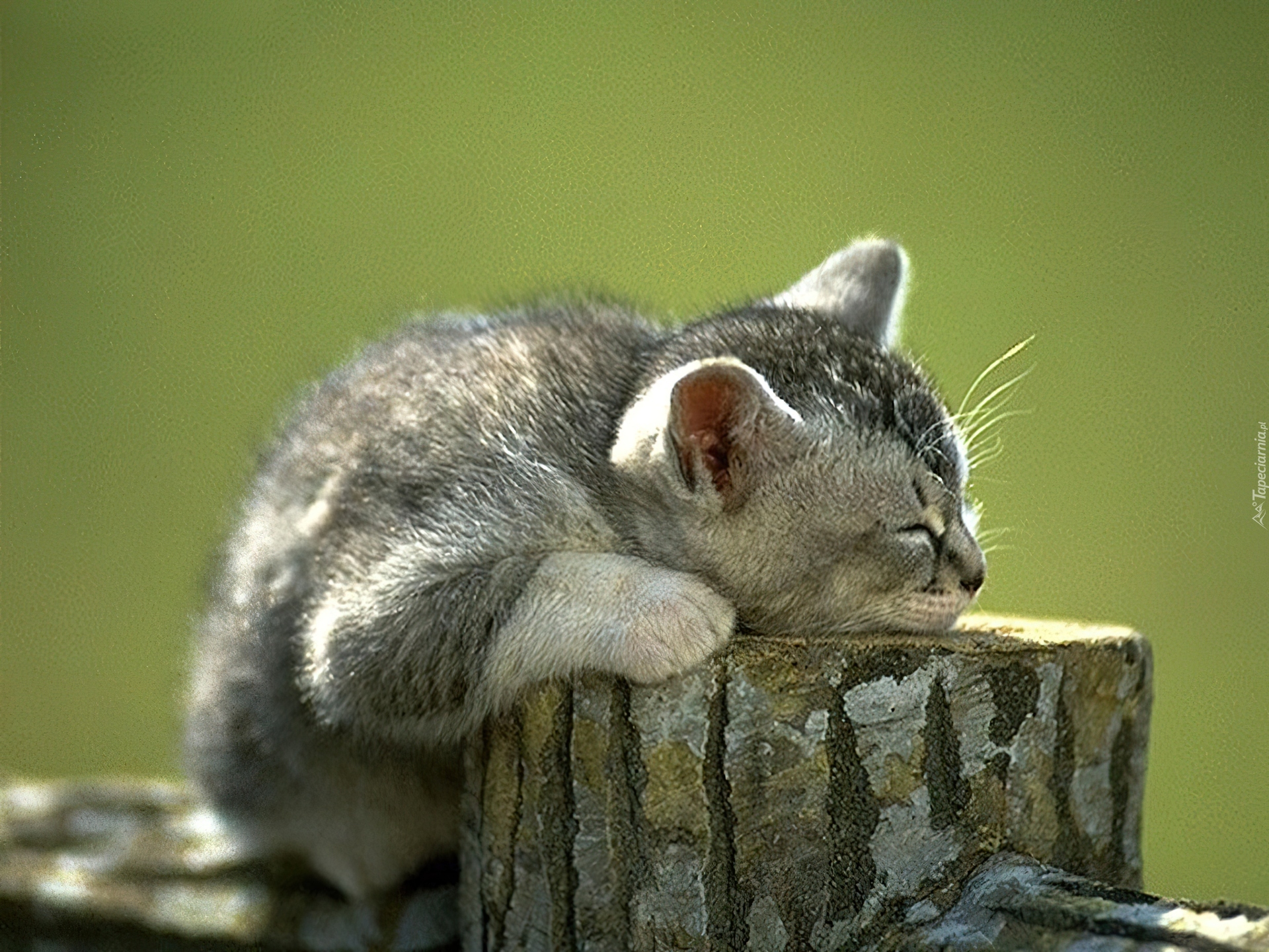 Edytor tapety: Śpiący, Kotek, Pieniek