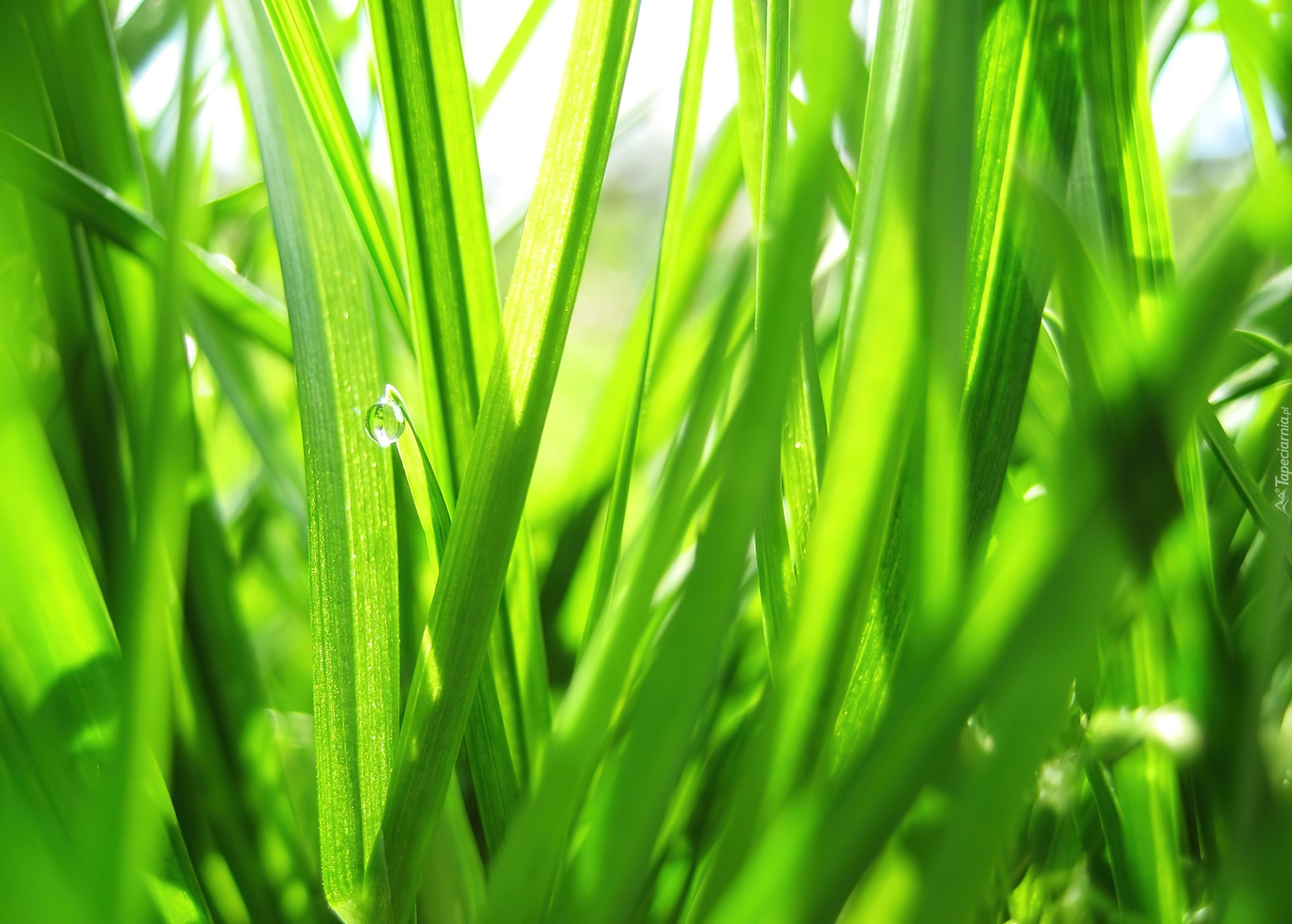 Edytor tapety: Jasnozielona, Trawa, Krople, Rosy