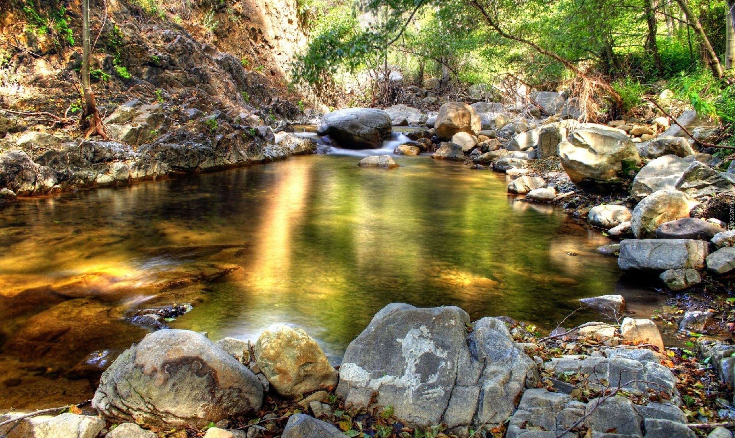 Edytor tapety: Strumień, Kamienie, Drzewa