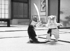 Edytor tapety: Dwa, Koty, Walka, Miecz