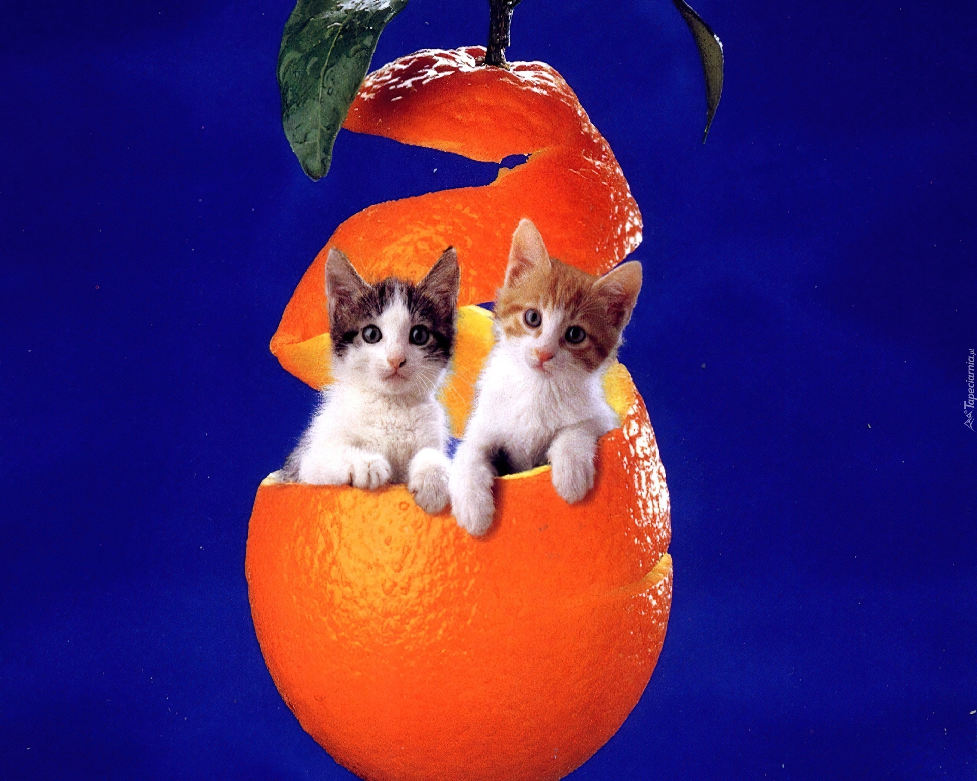 Edytor tapety: Dwa, Małe, Kotki, Pomarańcza