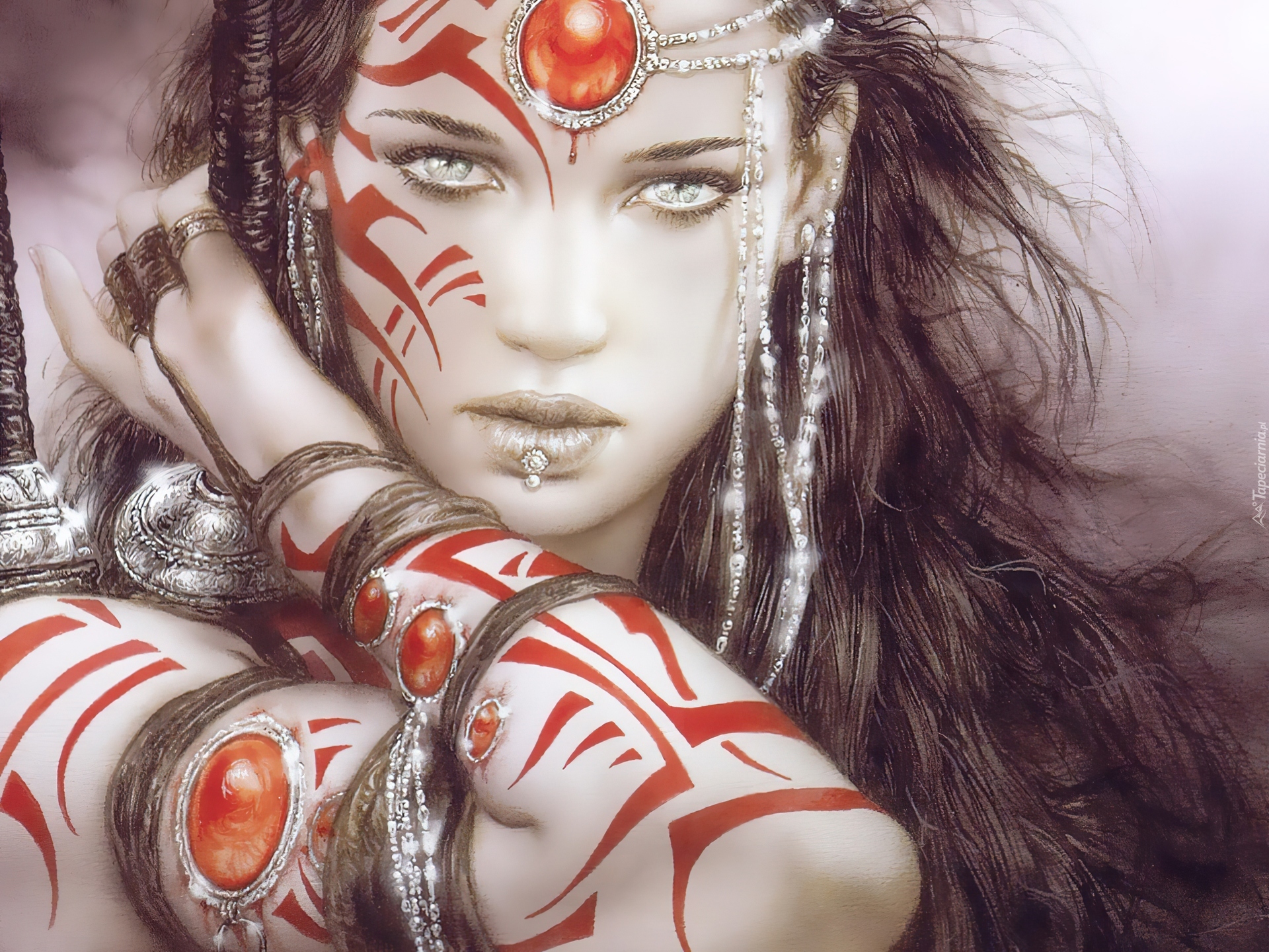 Edytor tapety: Kobieta, Biżuteria, Czerwone, Tatuaże