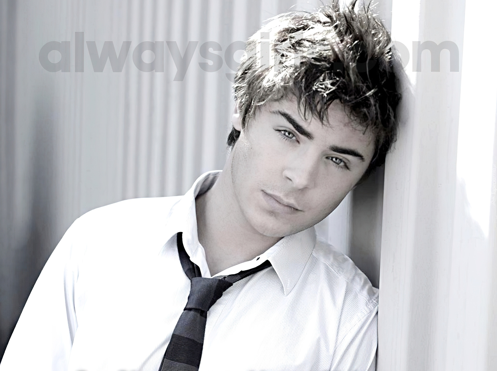 Edytor tapety: Zac Efron, Biała, Koszula, Krawat