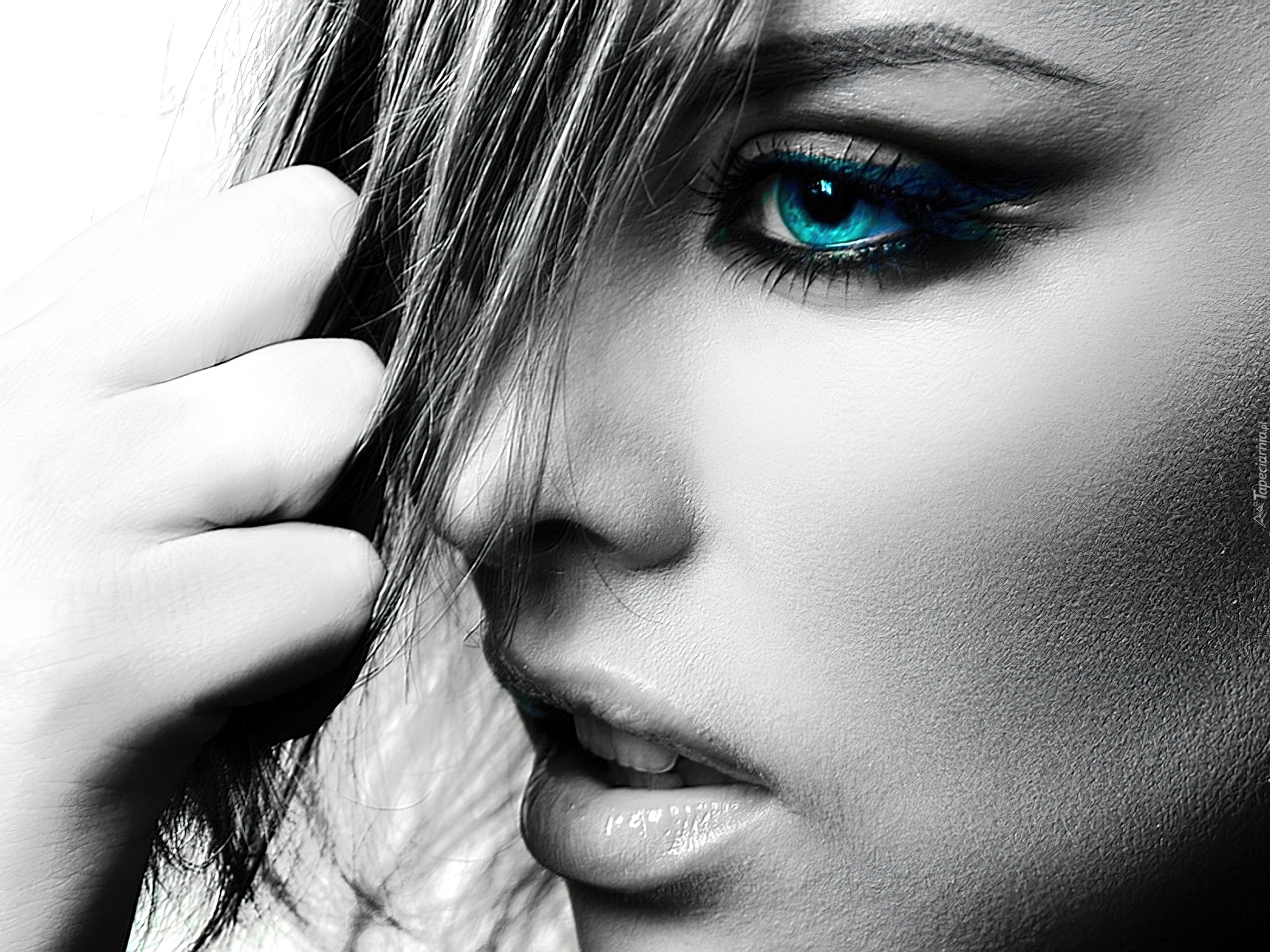 Edytor tapety: Kobieta, Twarz, Niebieskie, Oko