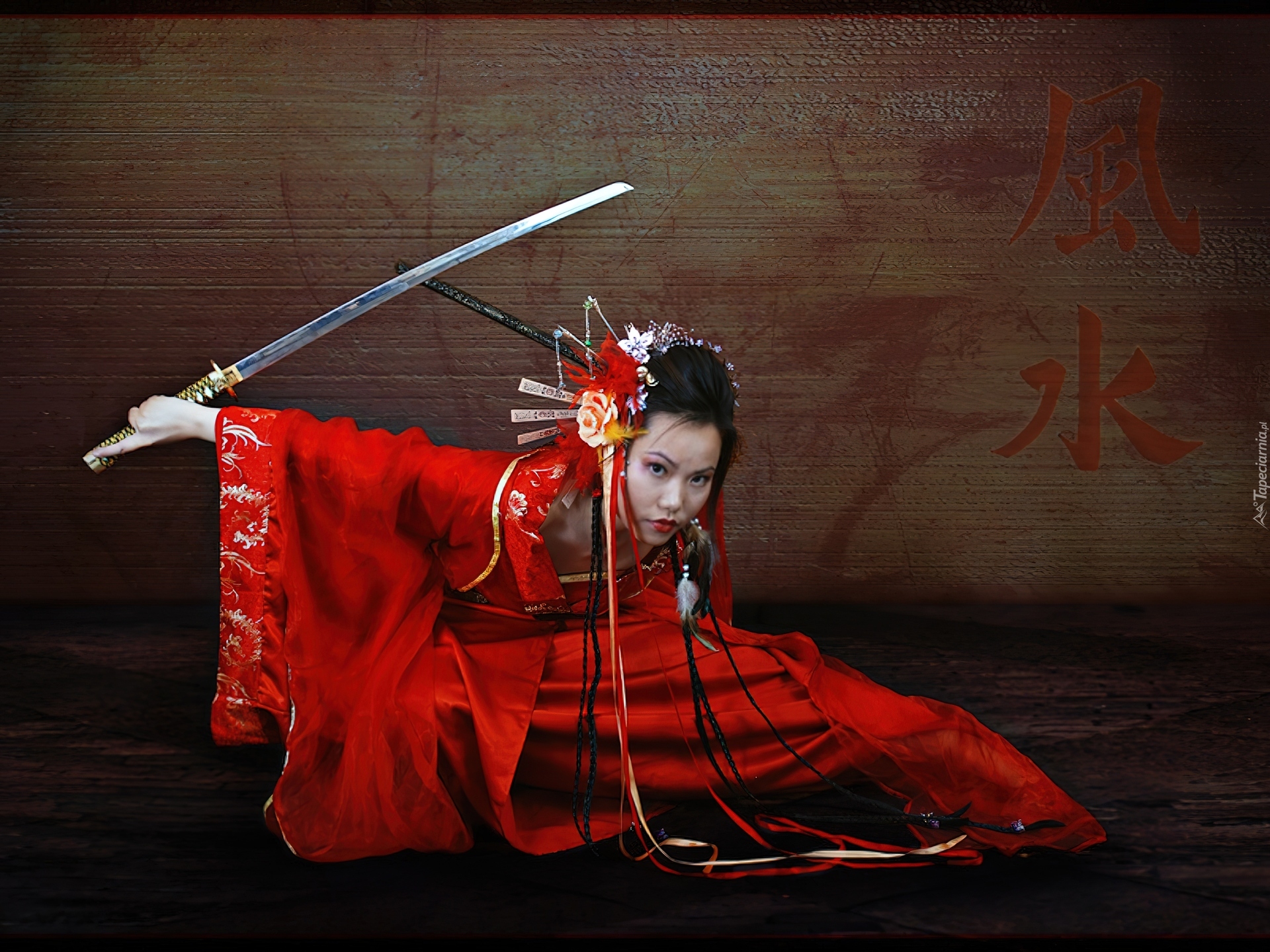 Edytor tapety: Gejsza, Katana