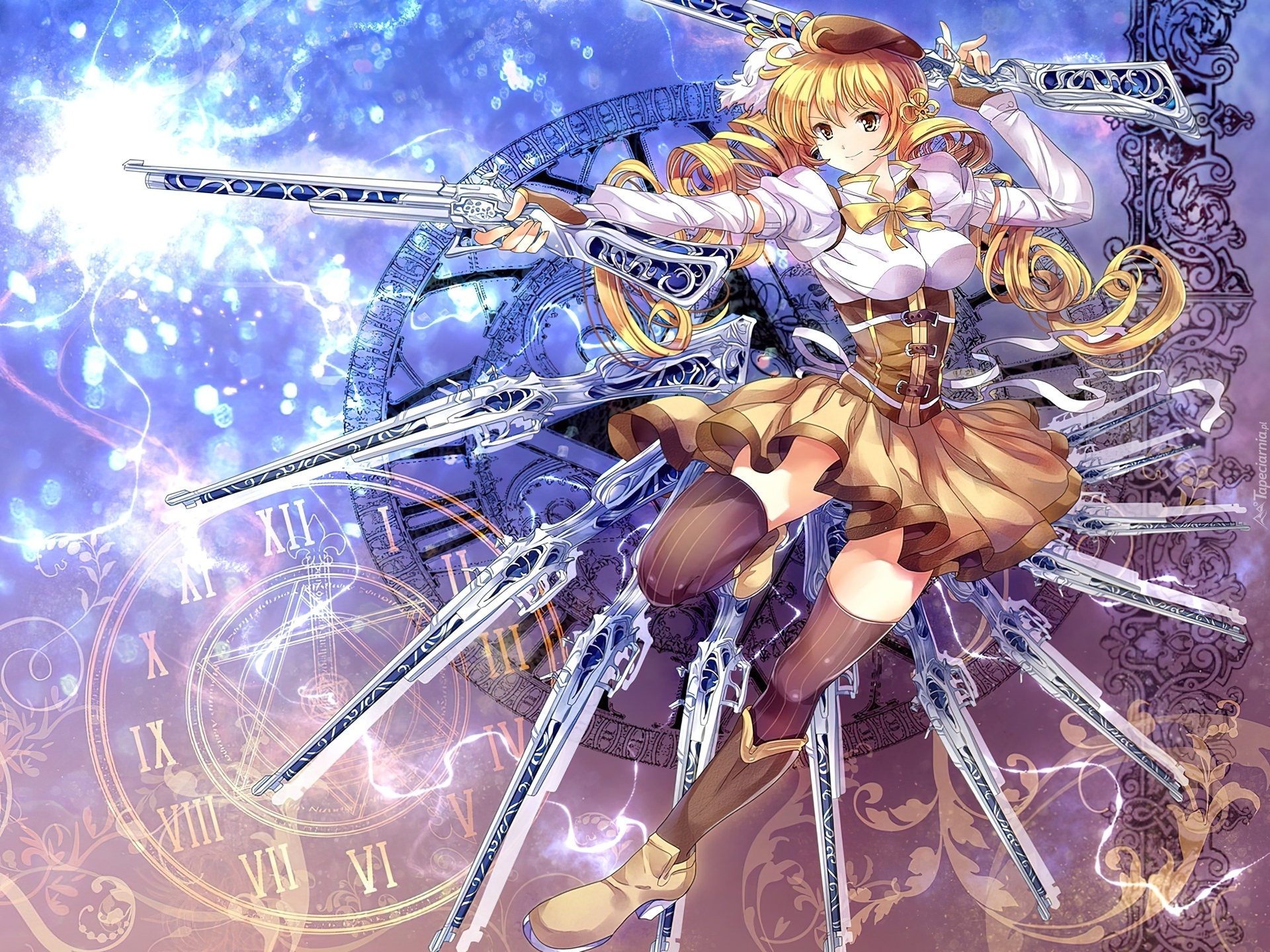 Edytor tapety: Dziewczyna, Pistolety, Zegar
