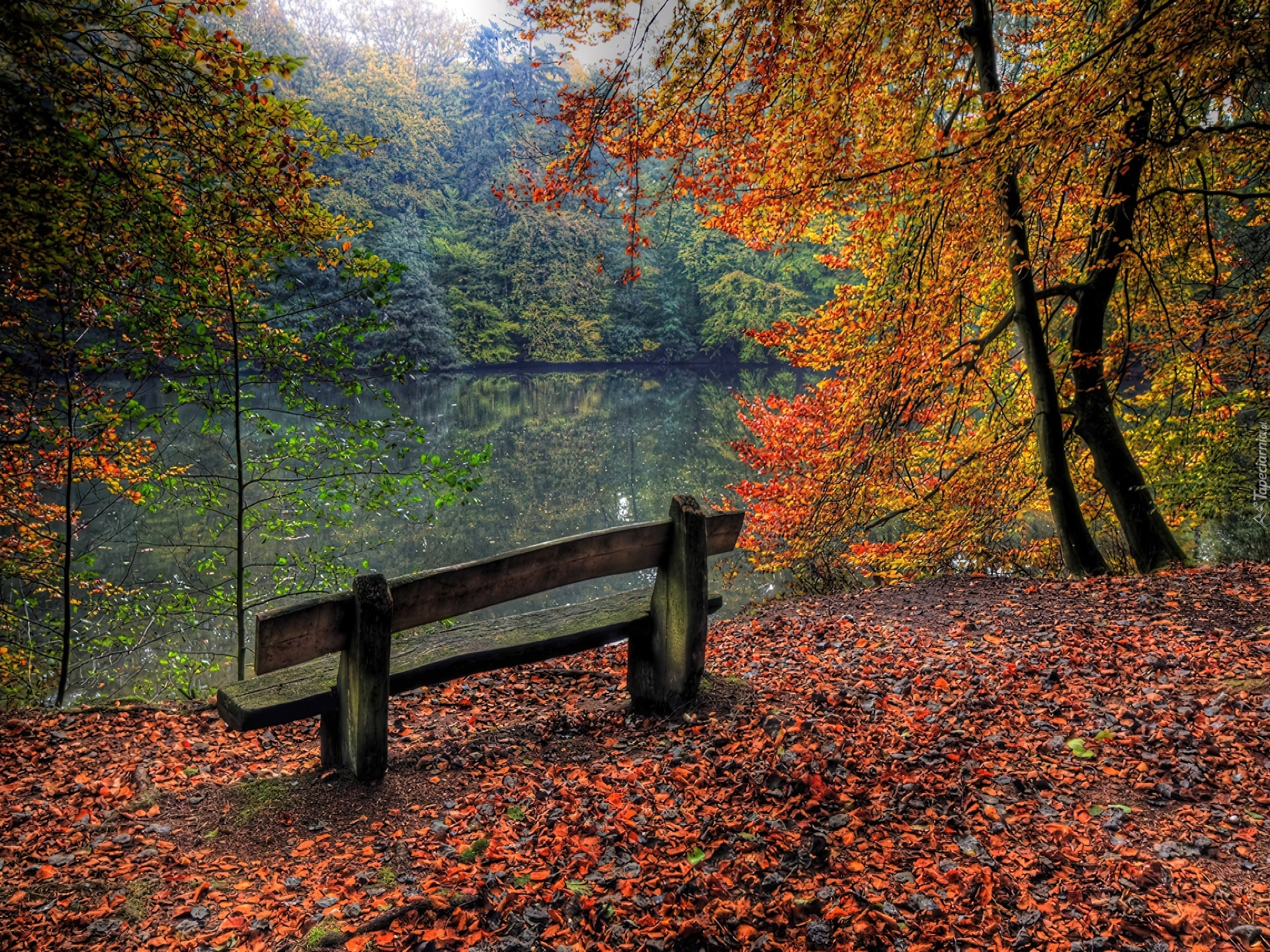 Edytor tapety: Jesień, Ławeczka, Las, Staw
