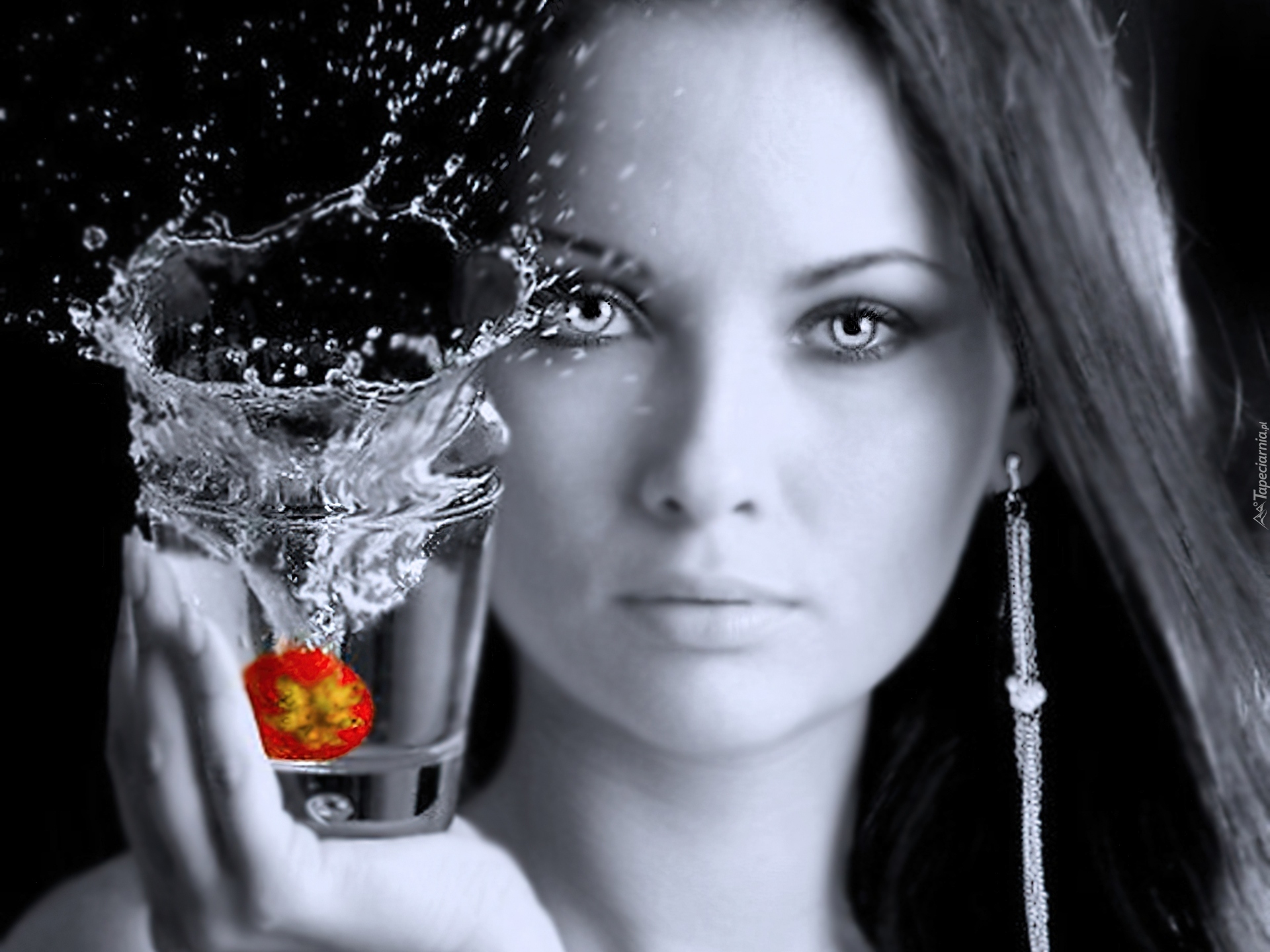 Edytor tapety: Kobieta, Szklanka, Truskawka