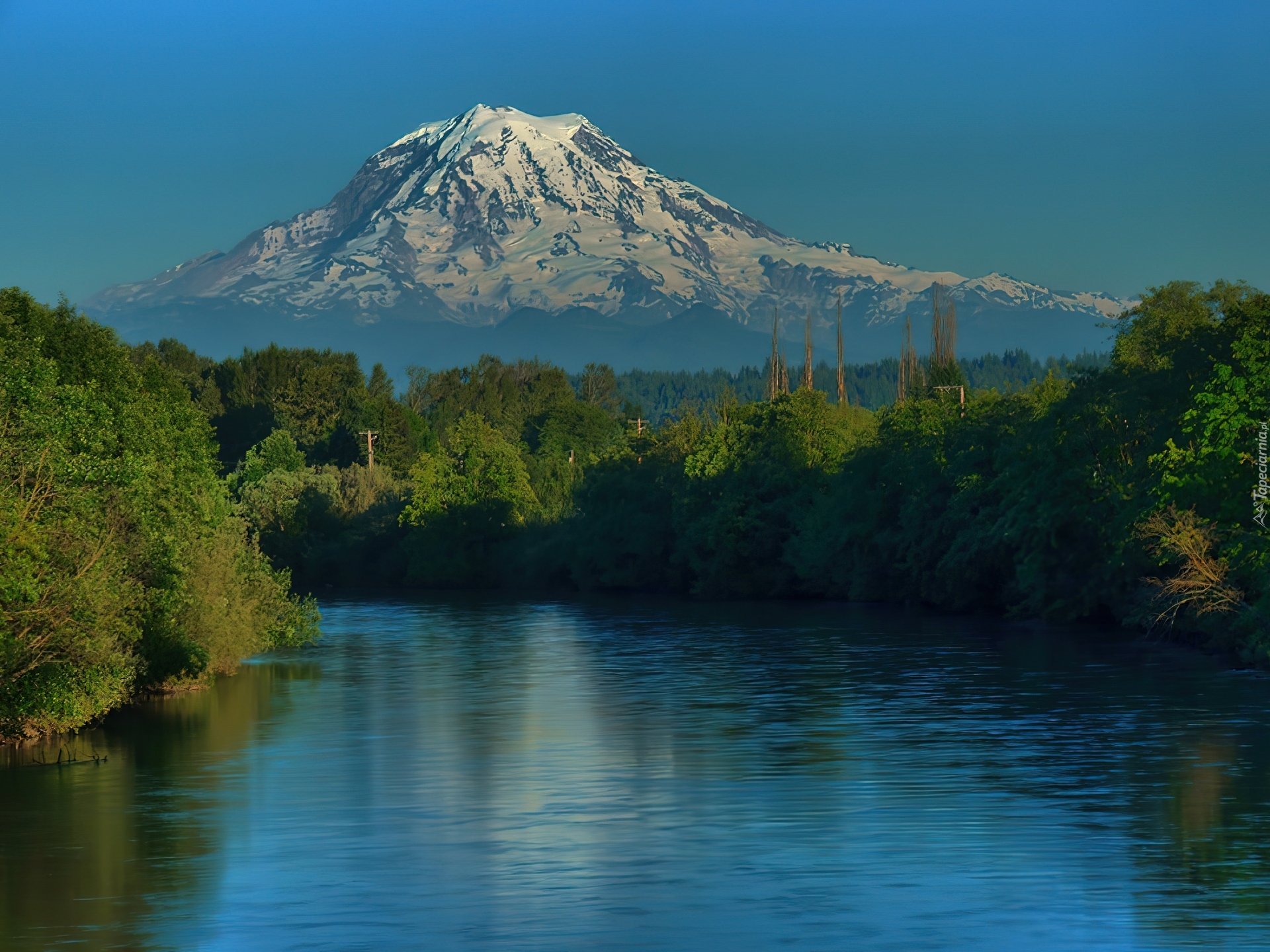 Edytor tapety: Góra, Drzewa, Rzeka, Las