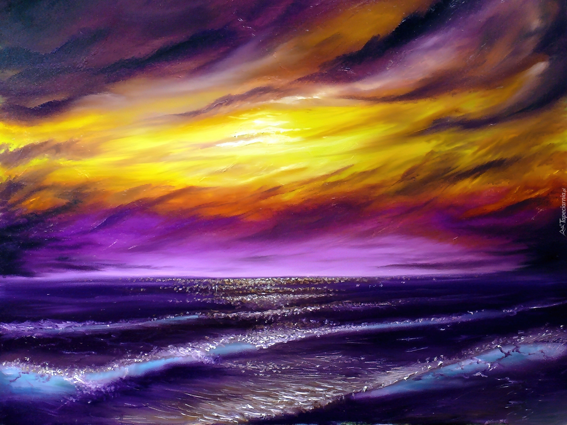 Edytor tapety: Zachód, Słońca, Chmury, Fale
