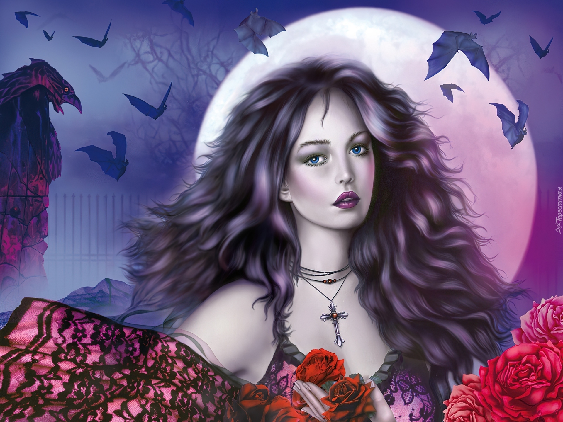 Edytor tapety: Kobieta, Księżyc, Nietoperze