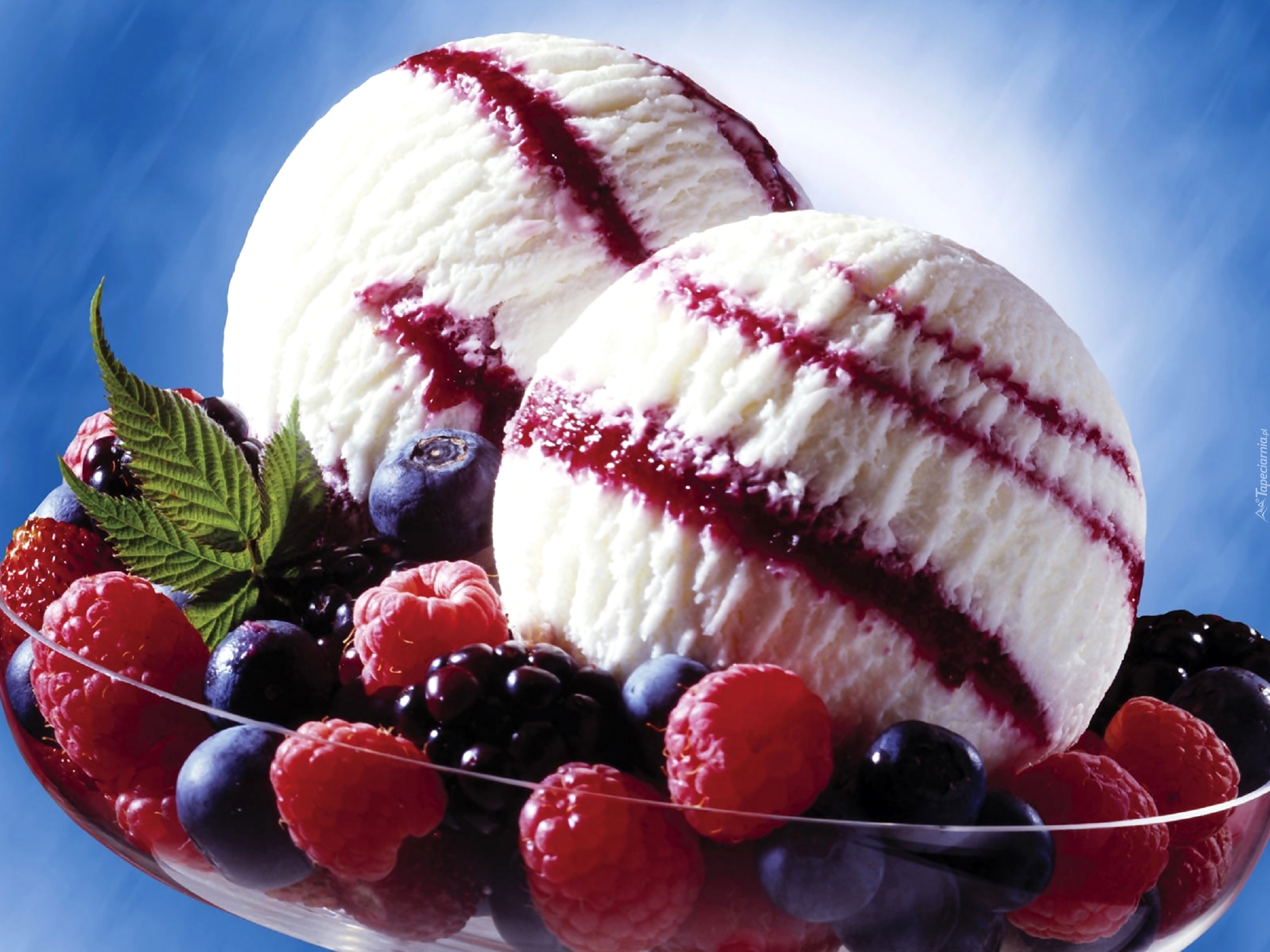 Edytor tapety: Dwie, Kulki, Lodów, Maliny, Jeżyny, Borówki