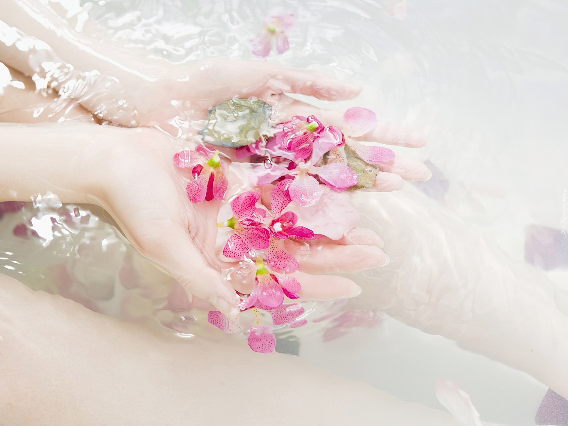 Edytor tapety: Ręce, Woda, Kwiaty