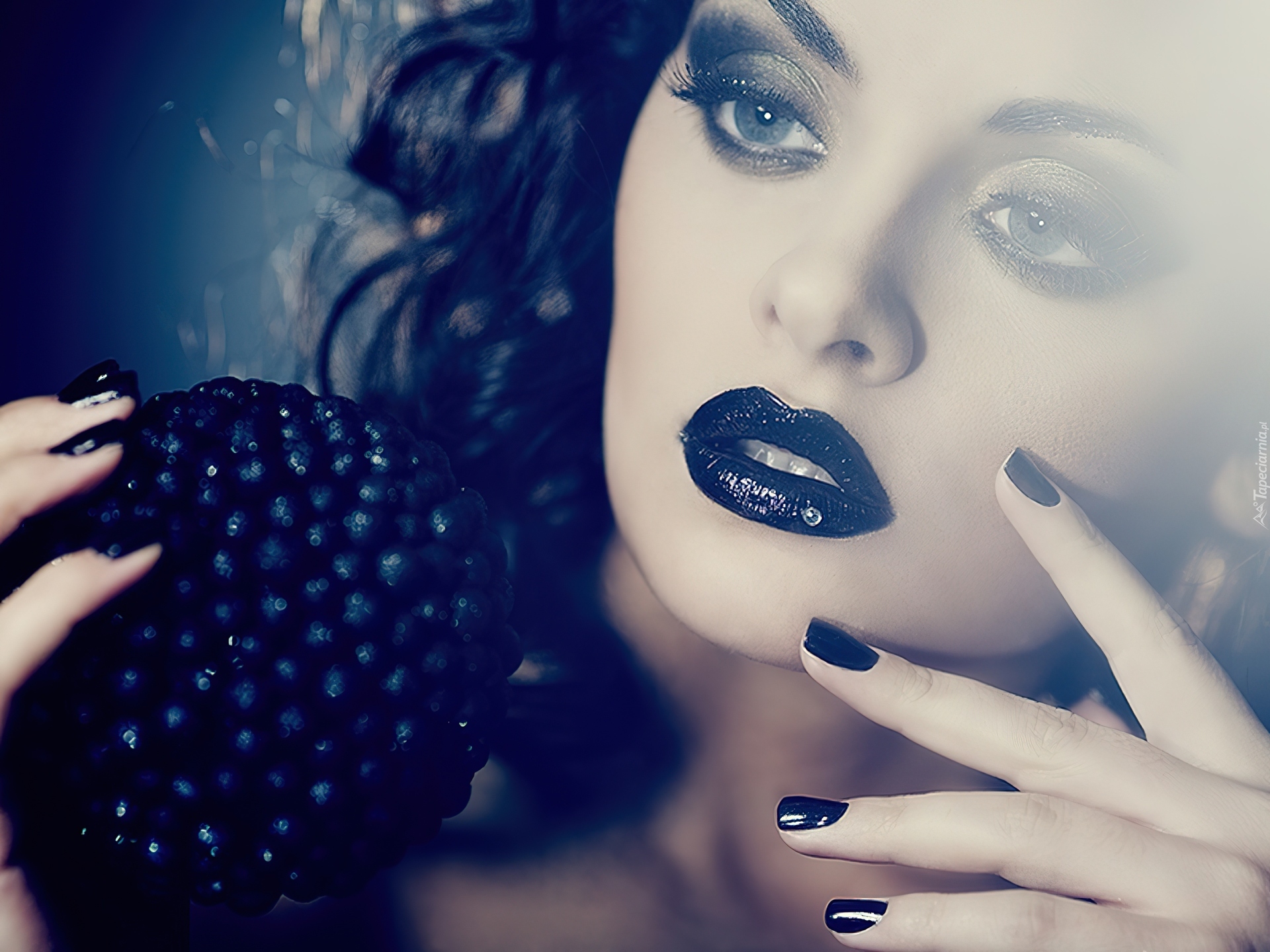 Edytor tapety: Kobieta, Twarz, Czarne, Usta
