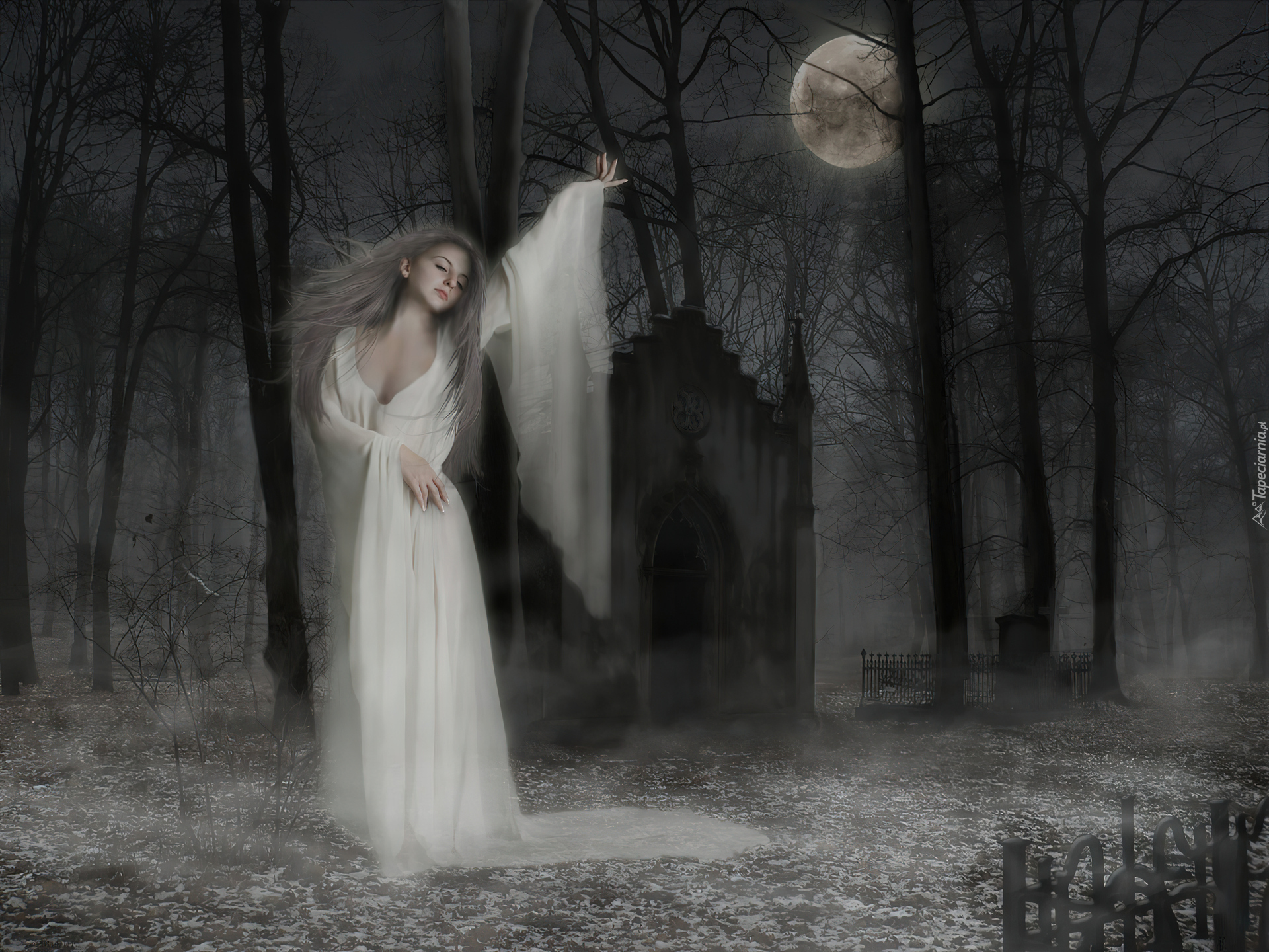 Edytor tapety: Dziewczyna, Las, Księżyc