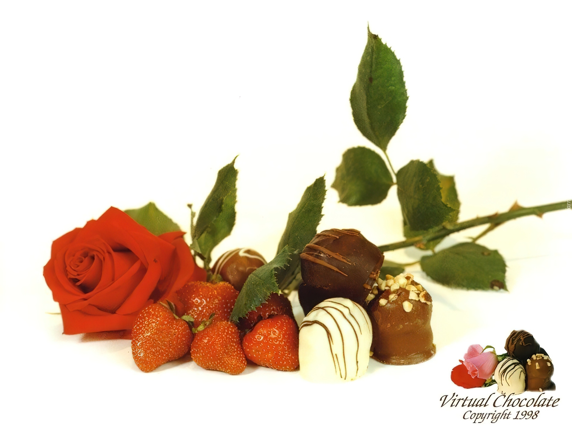 Edytor tapety: Czerwona, Róża, Truskawki, Pralinki