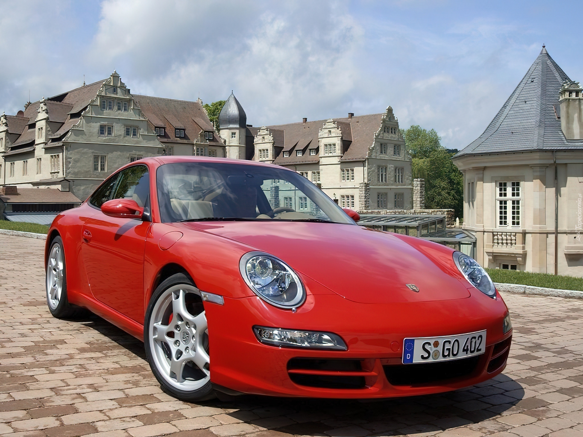 Edytor tapety: Czerwone Porsche Carrera, Dworek