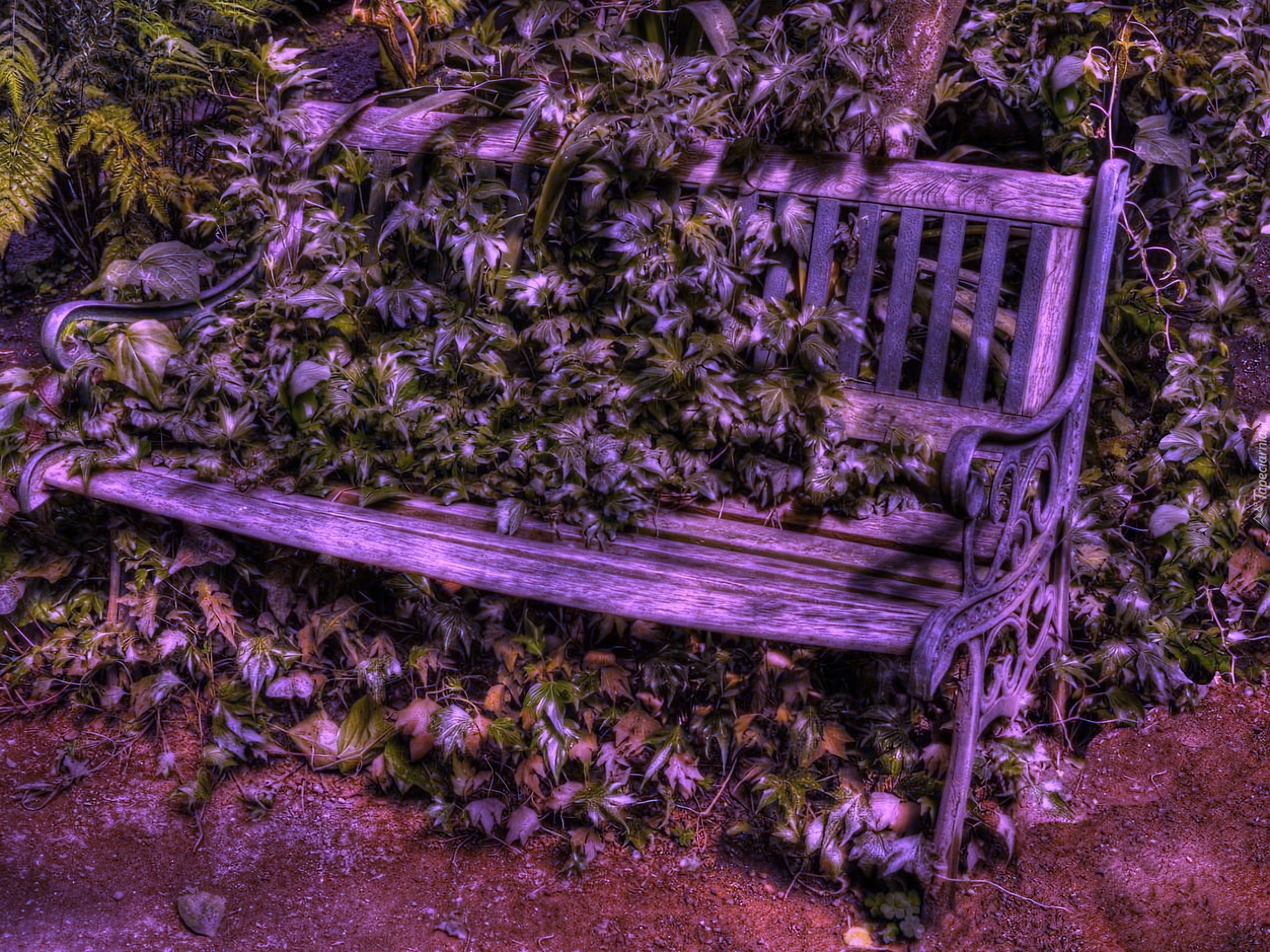 Edytor tapety: Ławka, Park, Bluszcz