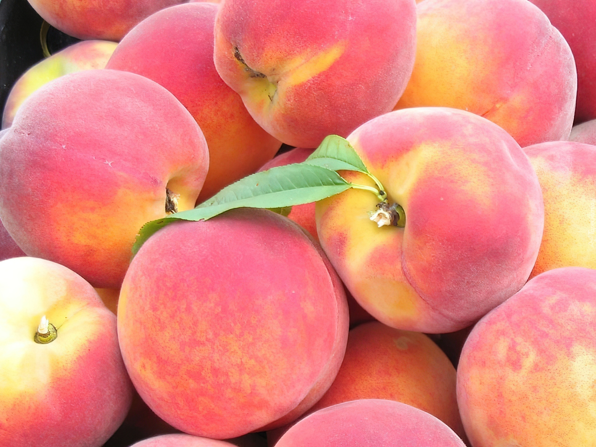 Edytor tapety: Dojrzałe, Brzoskwinie, Zielone, Listki