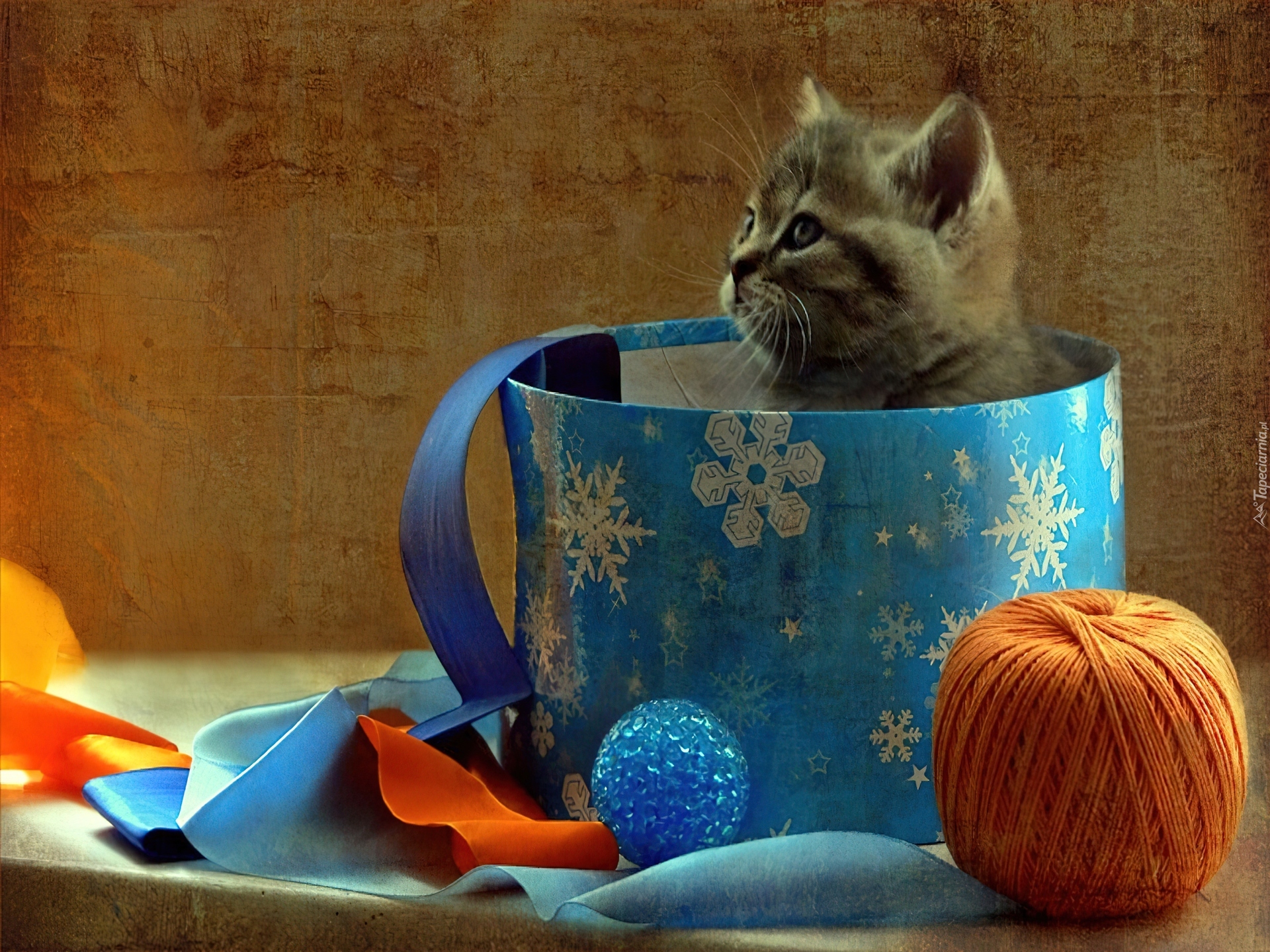 Edytor tapety: Kotek, Pudełko, Włóczka