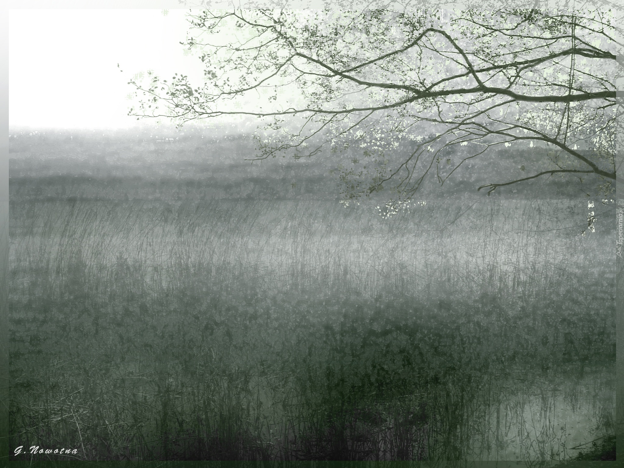 Edytor tapety: Jezioro, Trawy, Drzewo