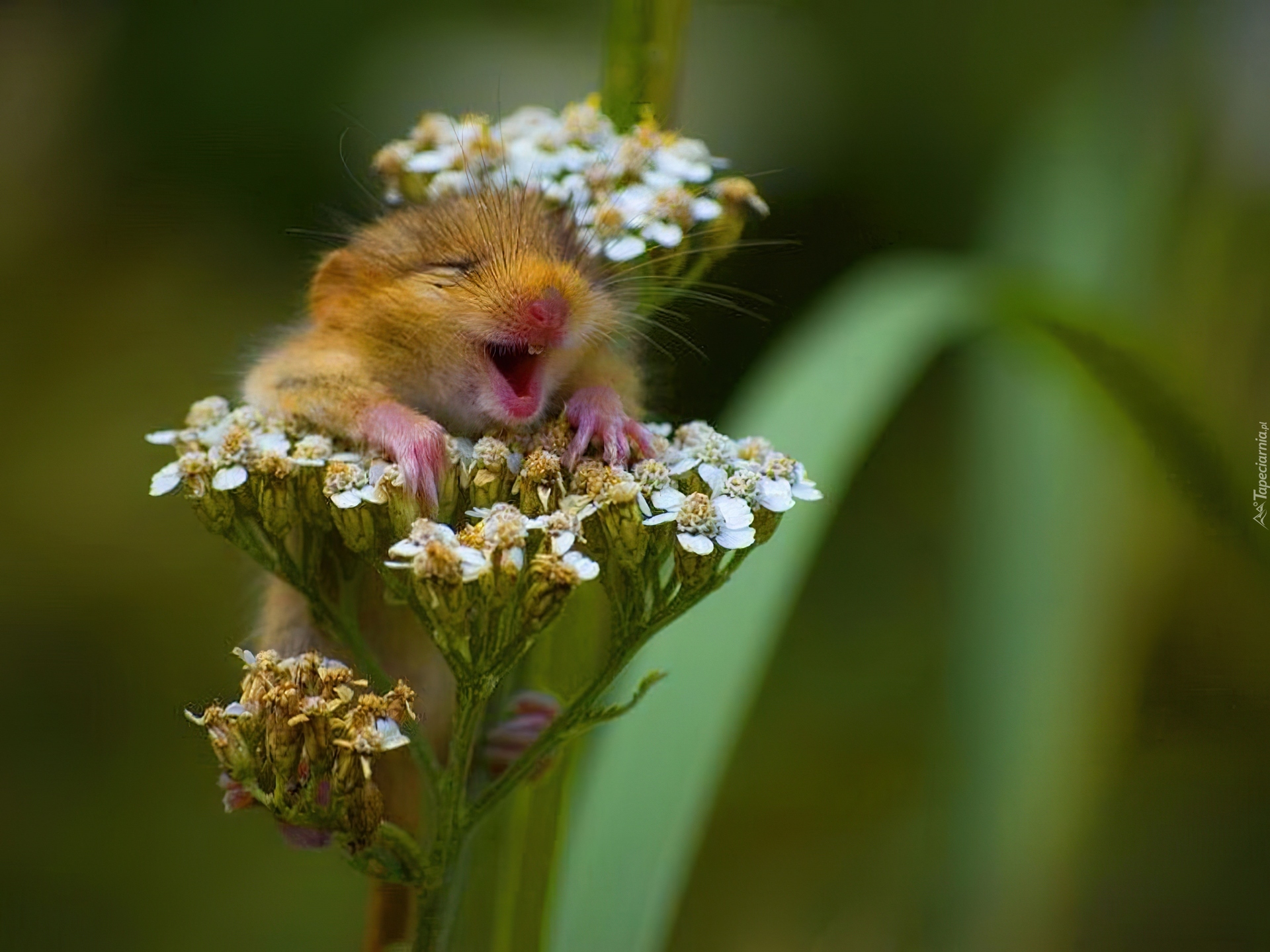 Edytor tapety: Zadowolona, Myszka, Kwiat