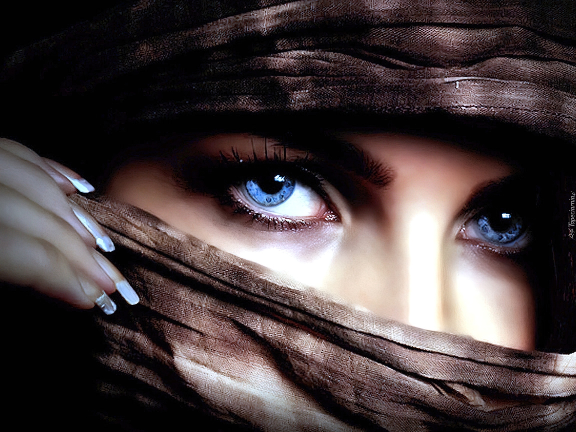 Edytor tapety: Kobieta, Chusta, Niebieskie, Oczy