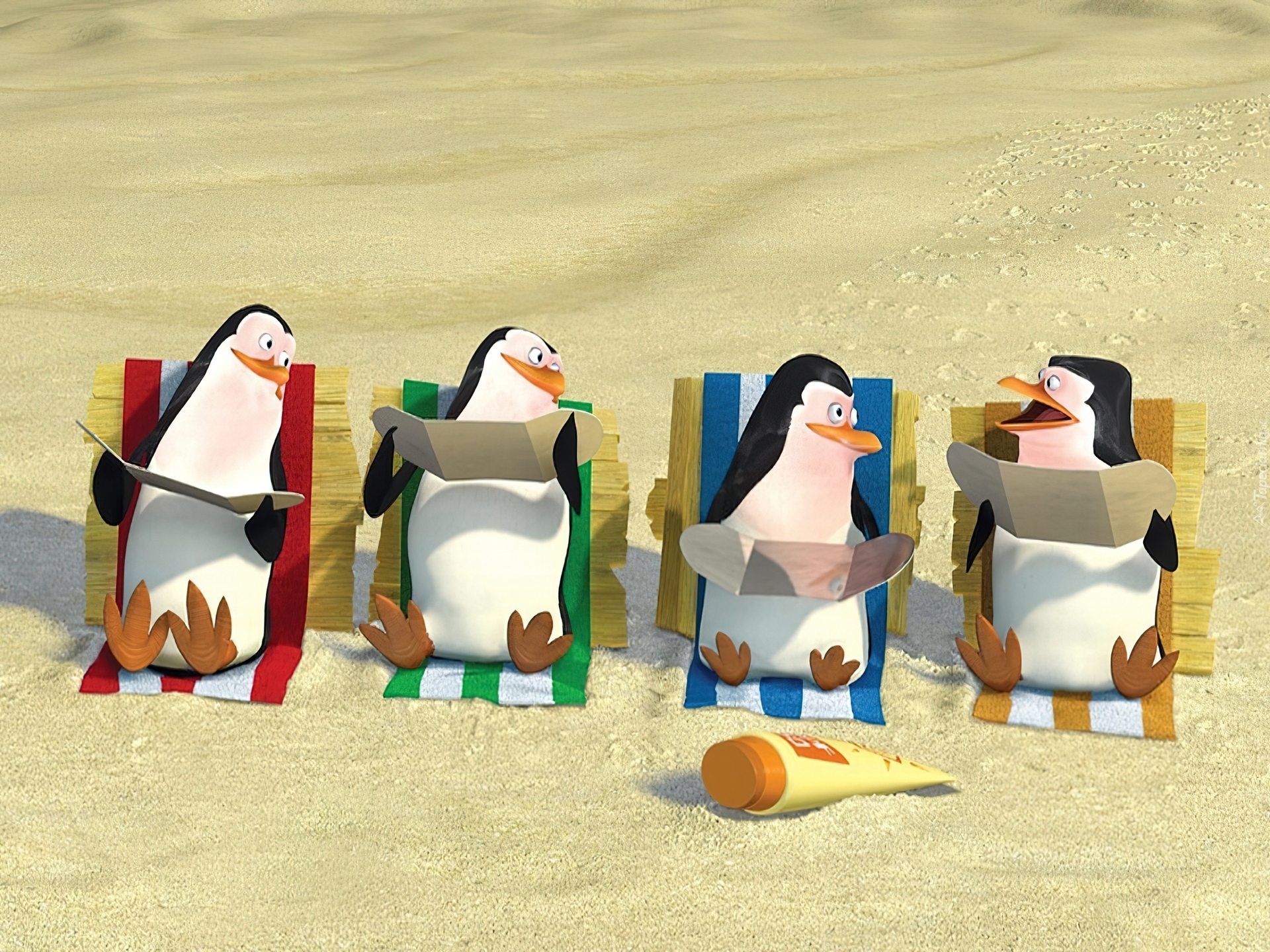 Edytor tapety: Pingwiny Z Madagaskaru, The Penguins of Madagascar, Pingwiny, Plaża
