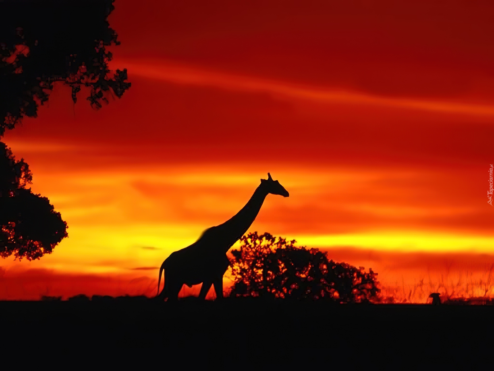 Edytor tapety: Zachód, Słońca, Żyrafa