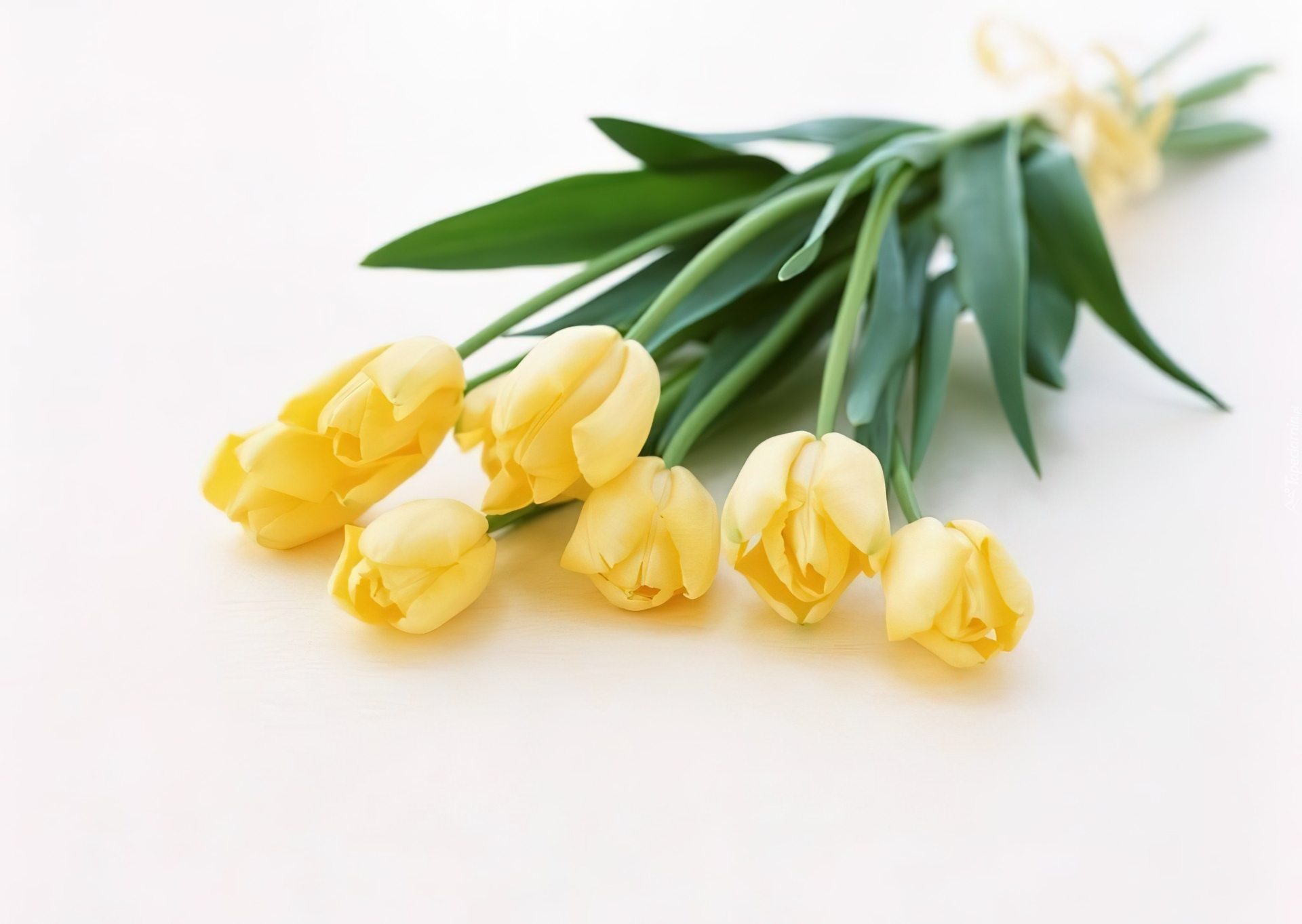 Edytor tapety: Bukiet, Żółtych, Tulipanów, Wstążeczka