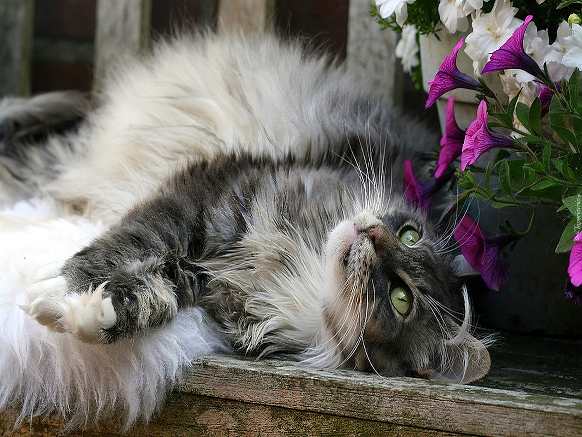 Edytor tapety: Puszysty, Kot, Kwiaty
