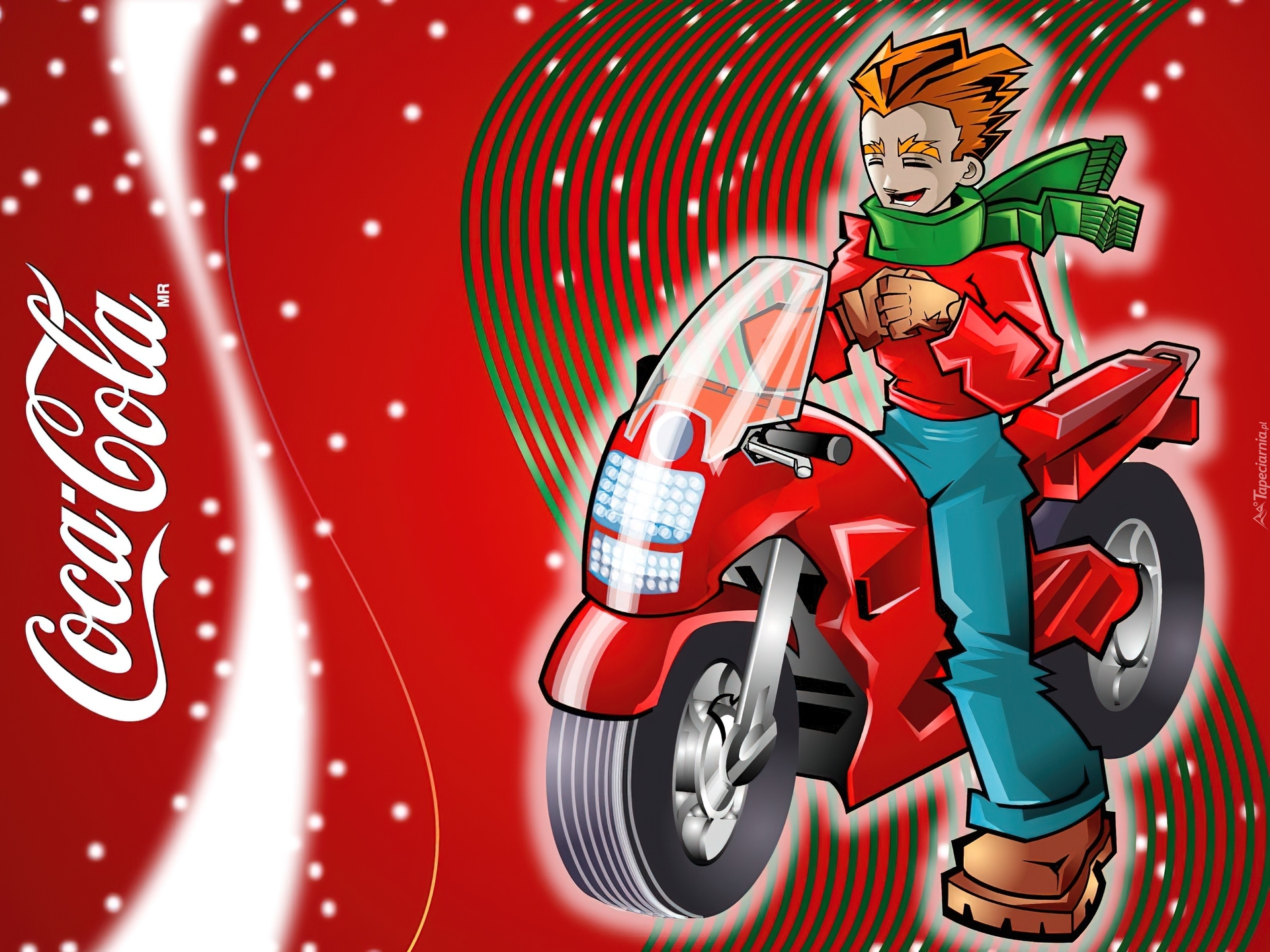 Edytor tapety: Logo, Coca, Cola, Chłopak, Motocykl