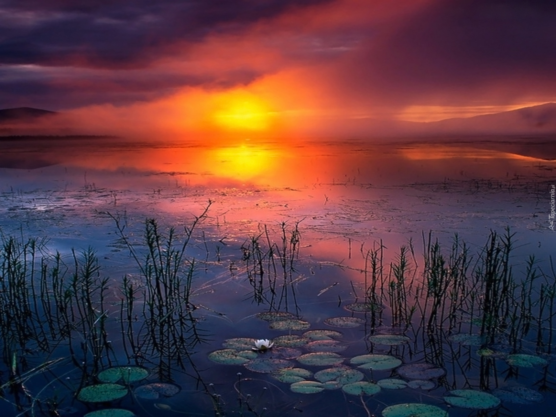 Edytor tapety: Zachód, Słońca, Jezioro