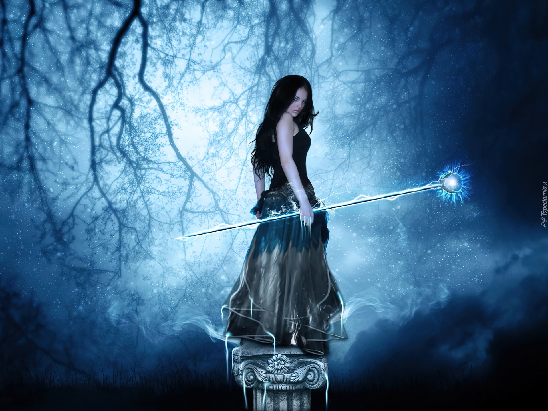 Edytor tapety: Kobieta, Berło, Drzewa, Mrok