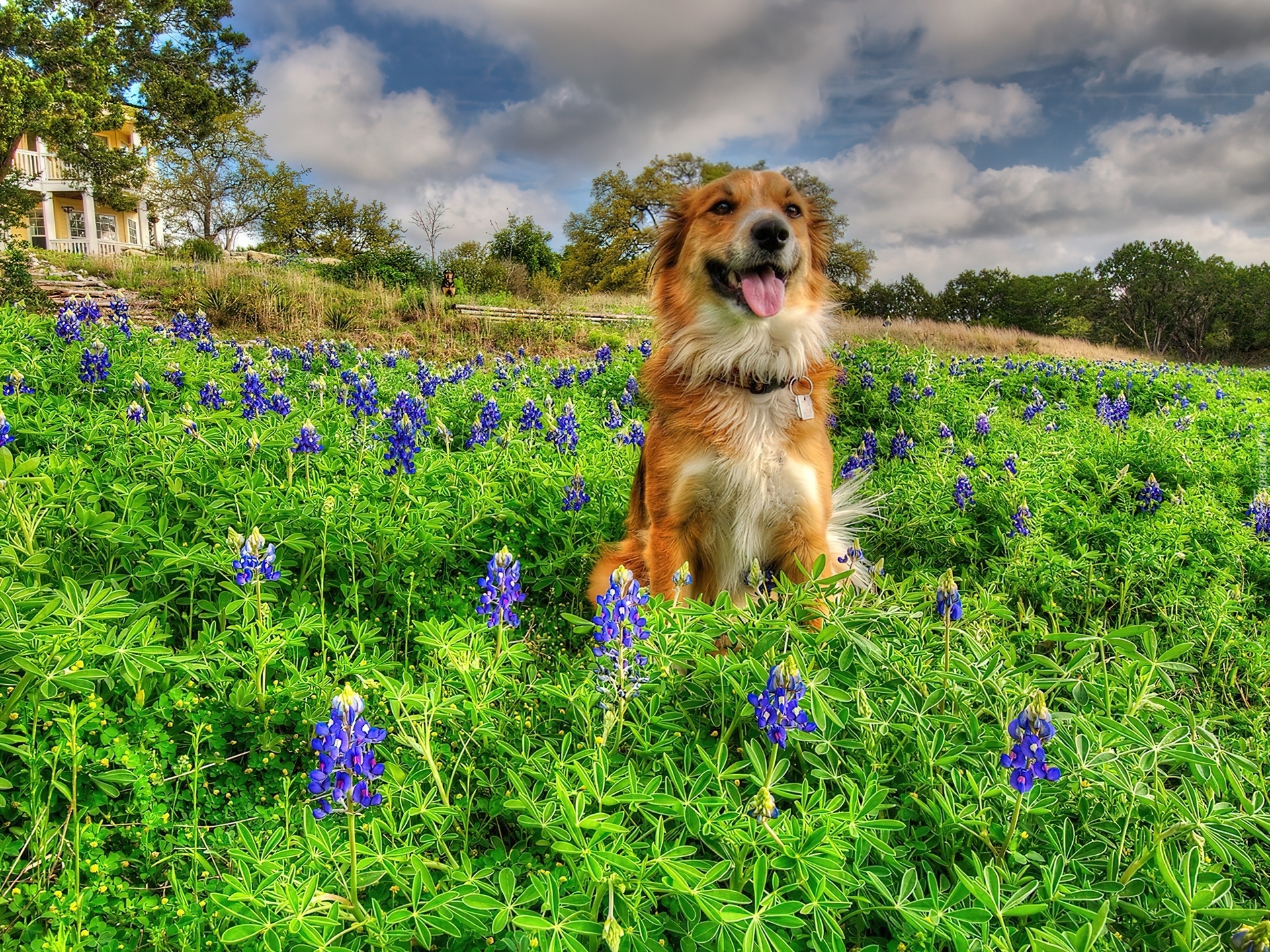 Edytor tapety: Piesek, Kwiaty, Łąka