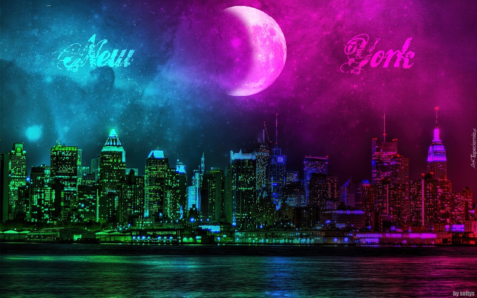 Edytor tapety: New York, Noc, Niebo, Dwa, Kolory, Księżyc