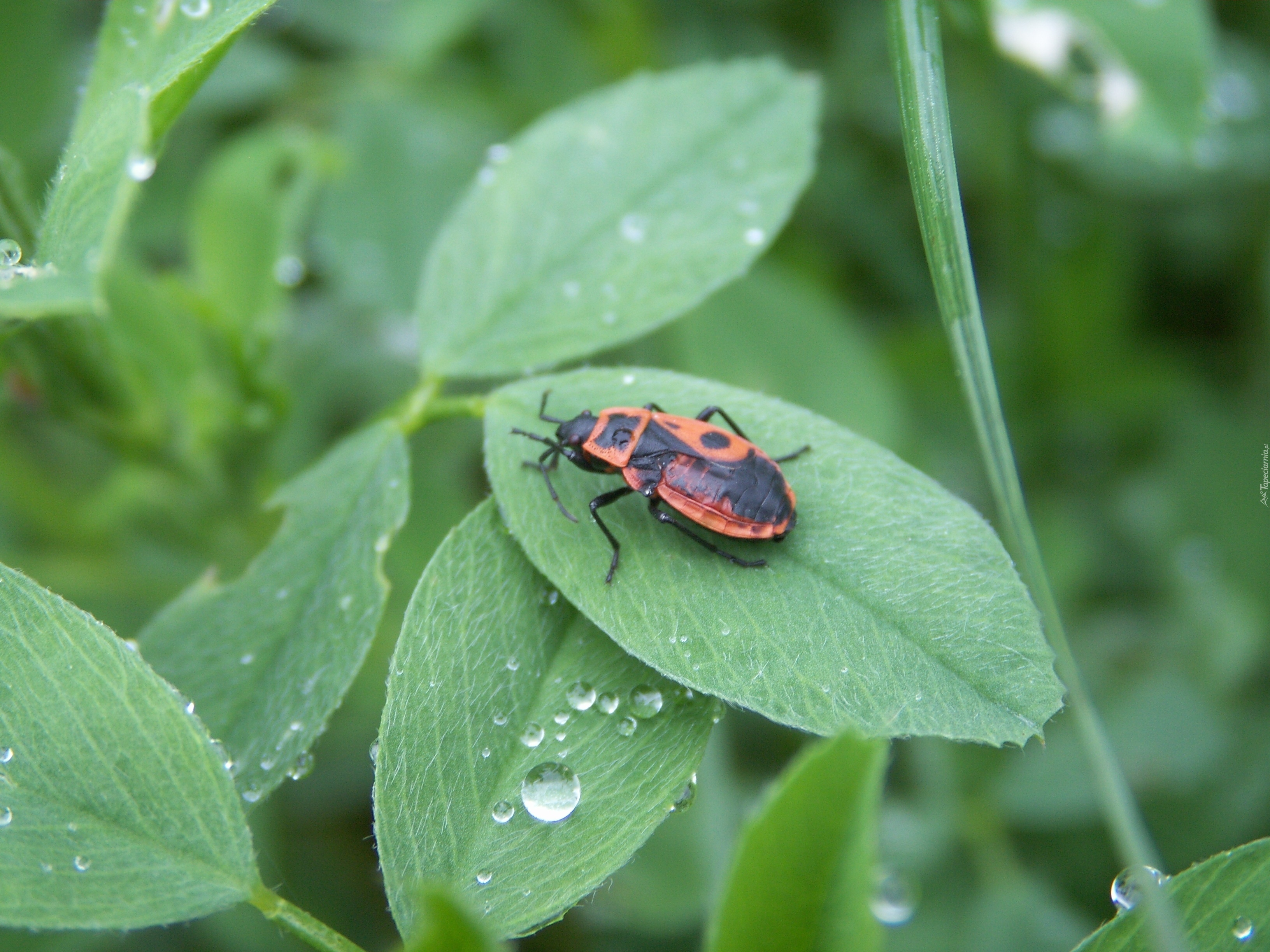 Edytor tapety: Kowal bezskrzydły, Liść, Krople, Deszczu