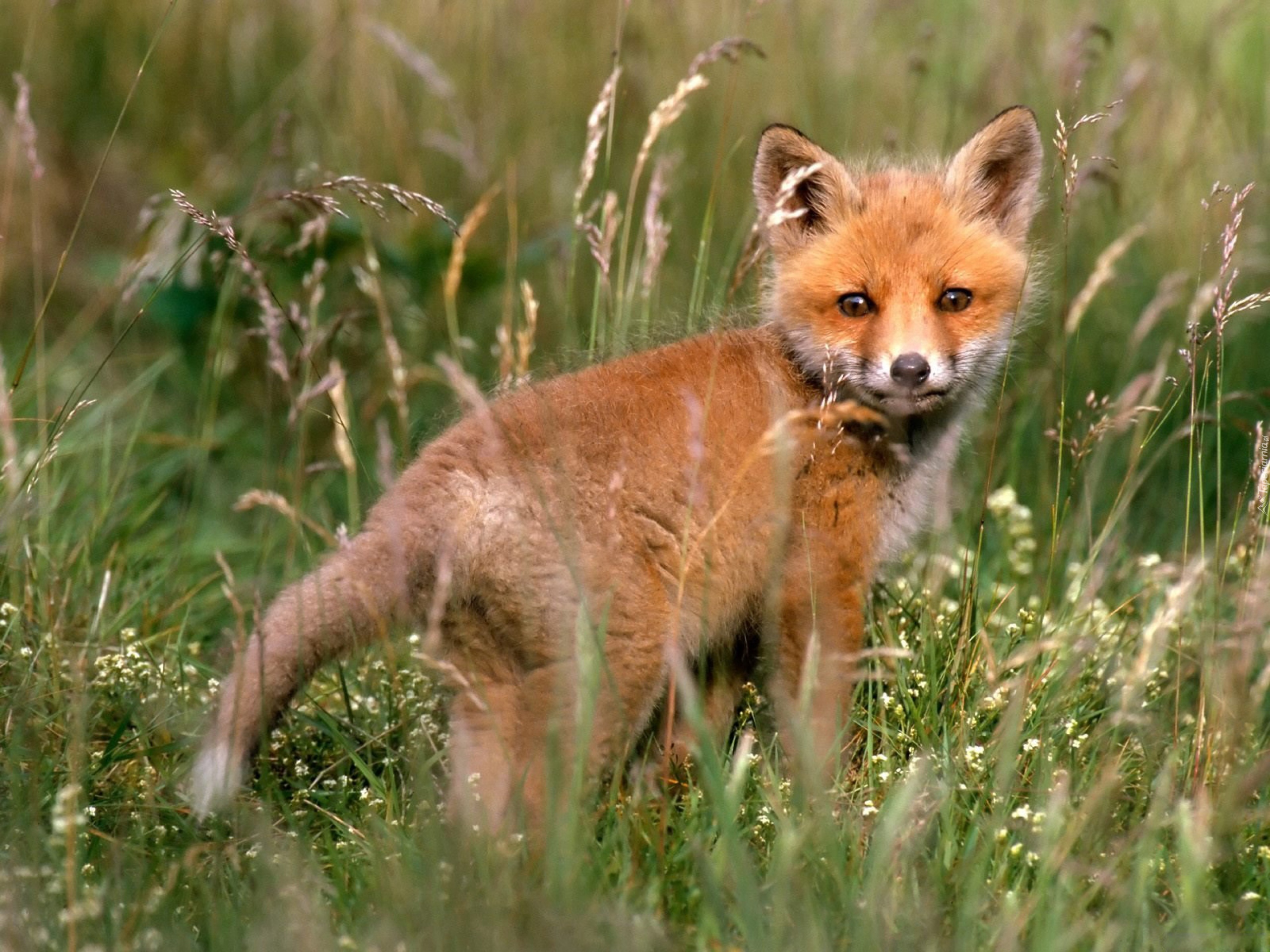 Edytor tapety: Rudy, Lisek, Trawa