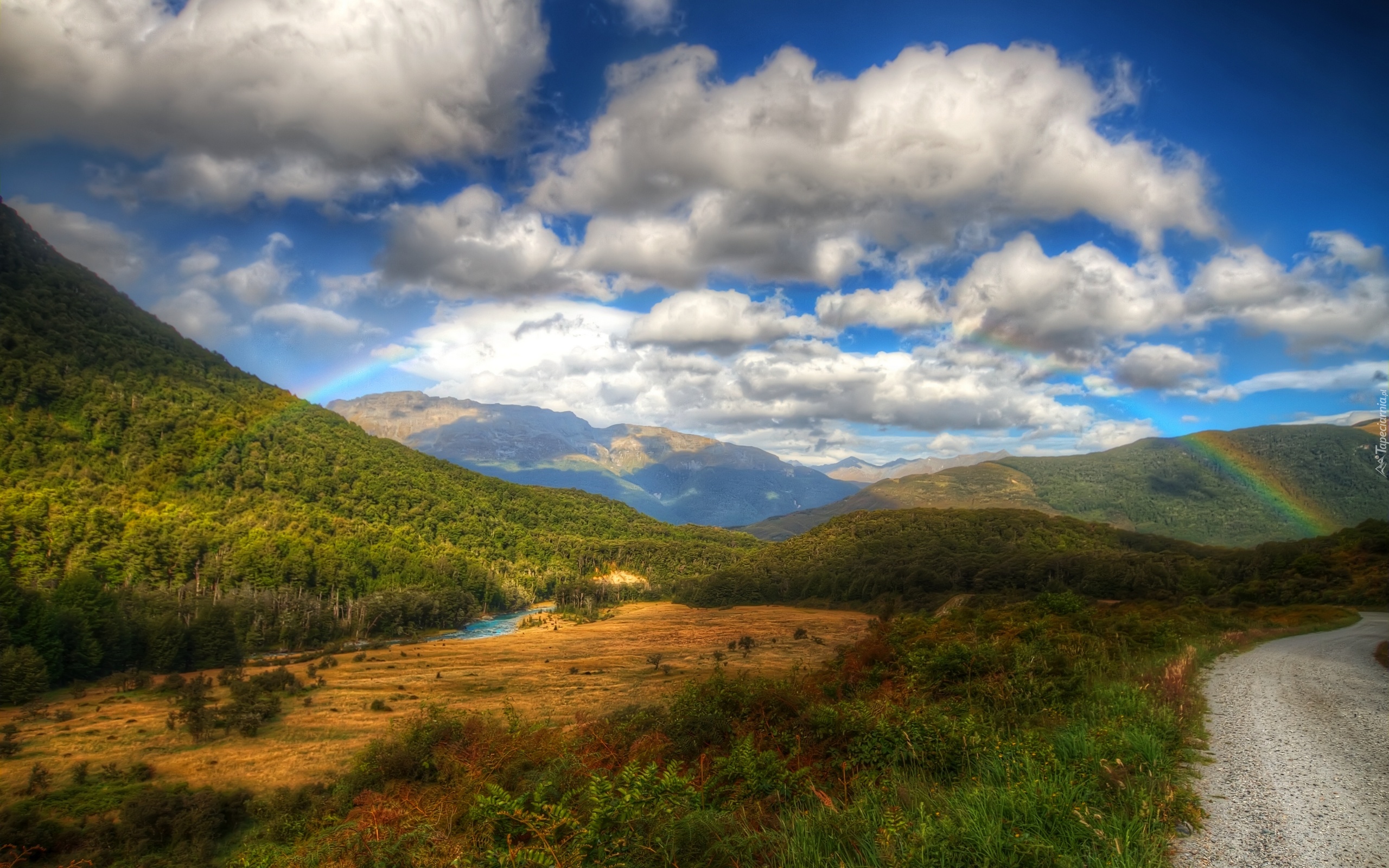 Edytor tapety: Chmury, Tęcza, Droga, Góry