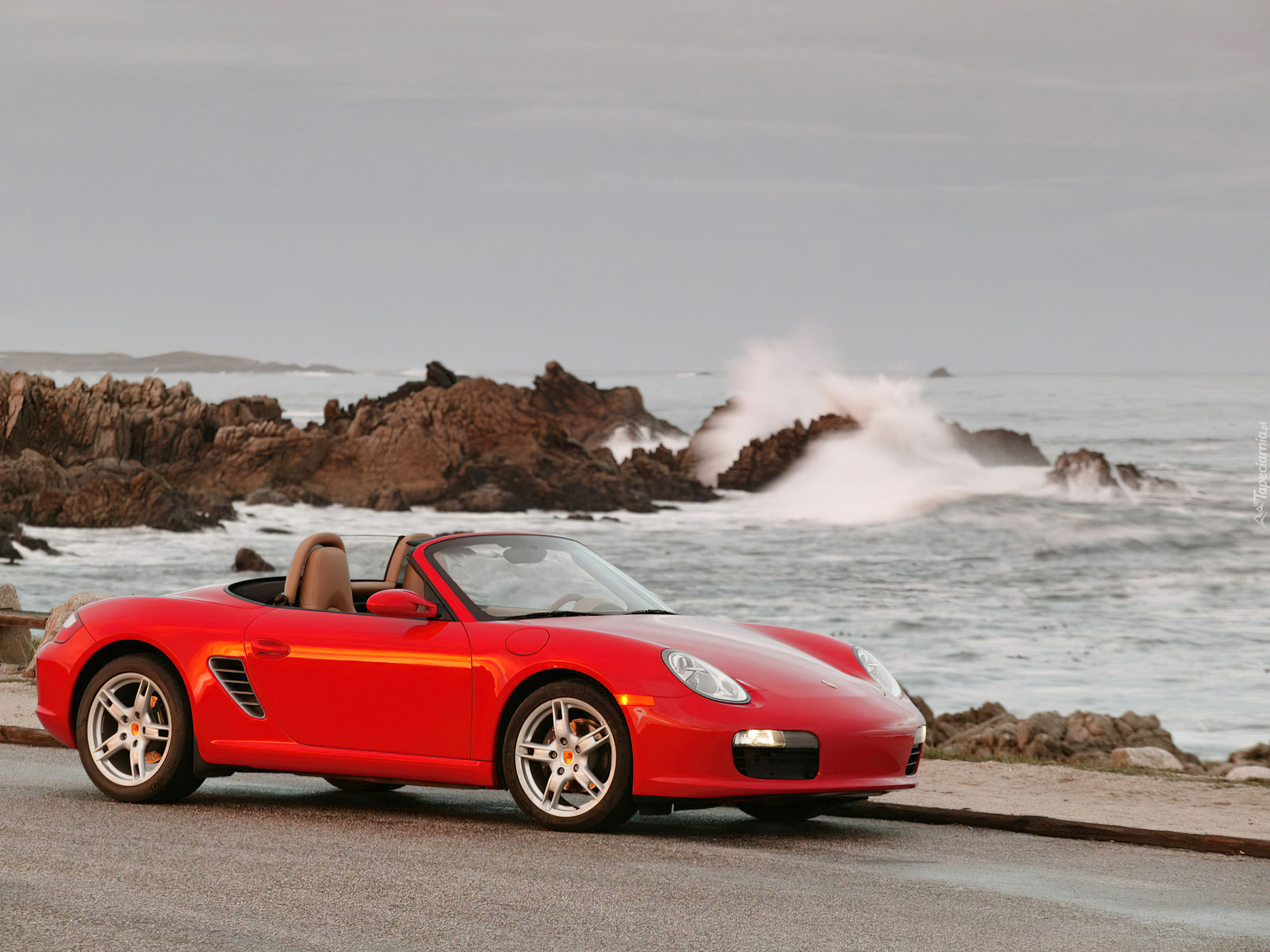 Edytor tapety: Czerwone Porsche, Wybrzeże