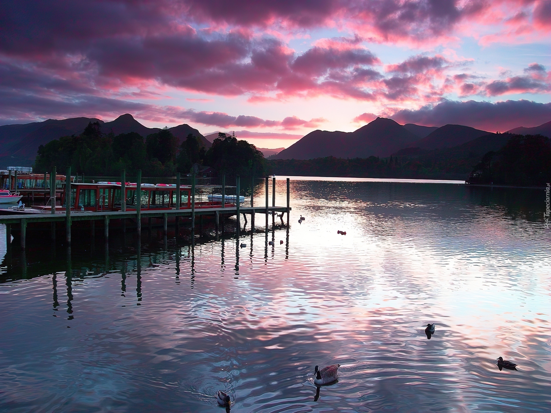 Edytor tapety: Różowe, Chmury, Jezioro, Przystań