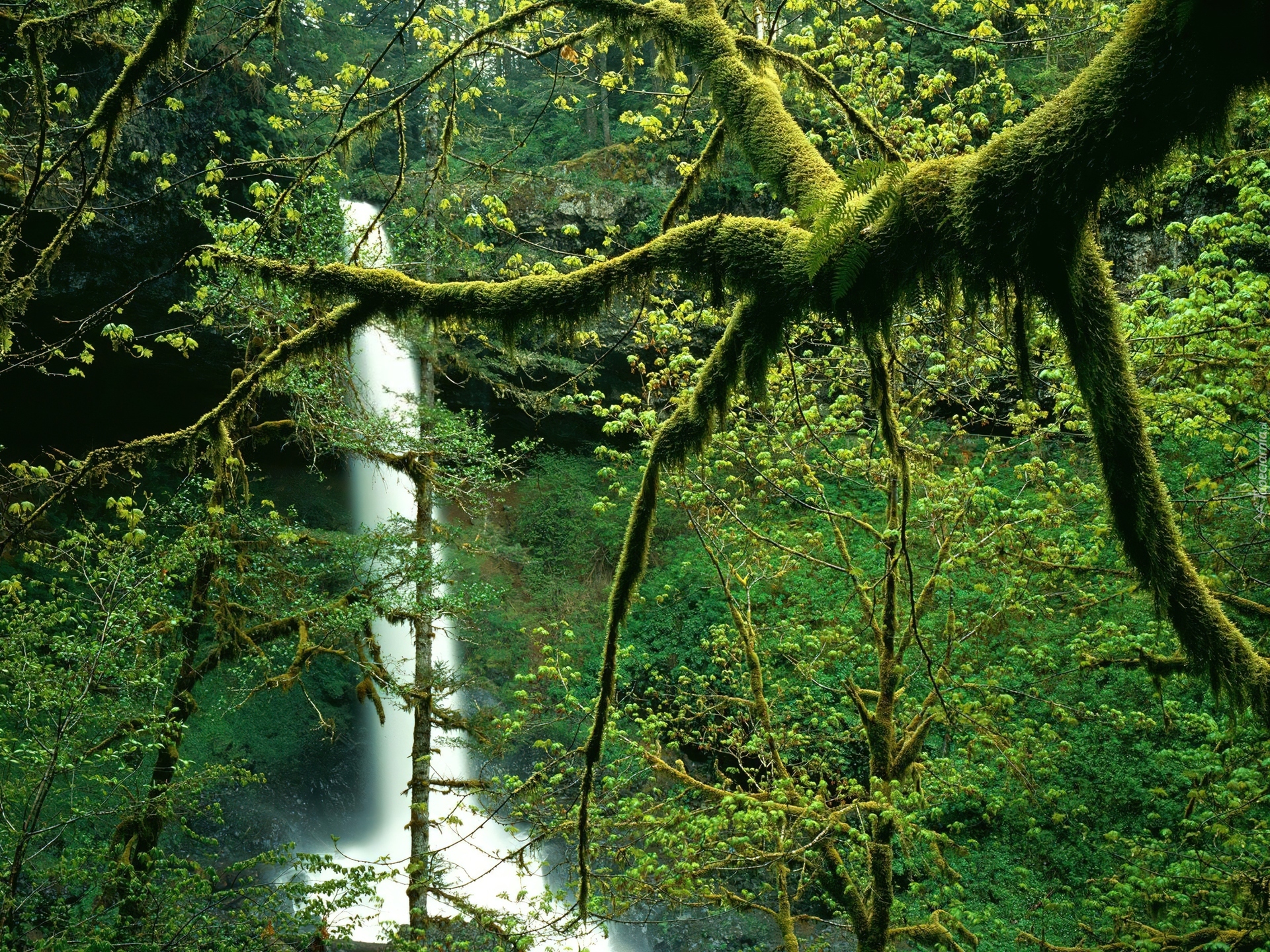 Edytor tapety: Wodospad, Oregon, Bujna, Roślinność