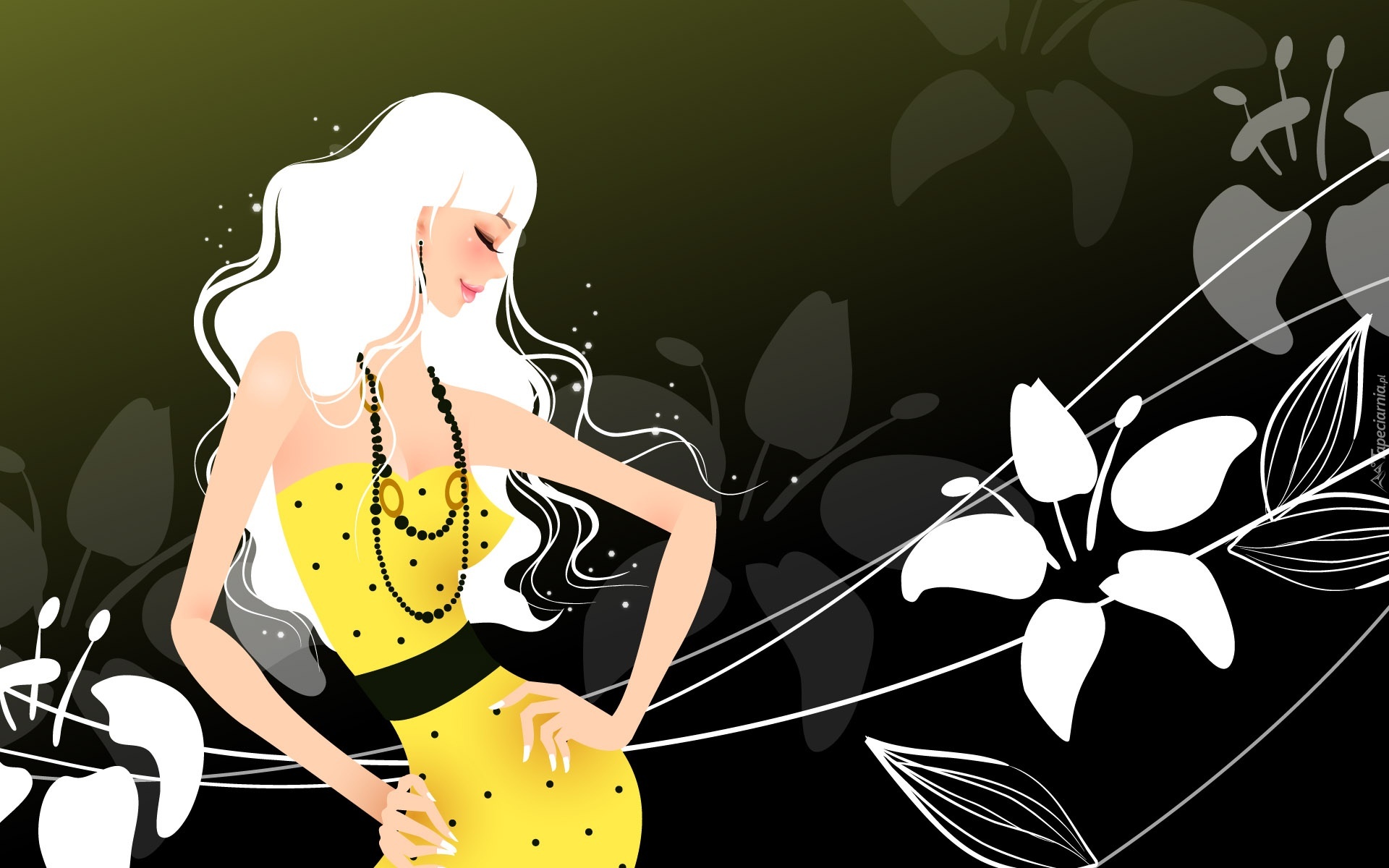 Edytor tapety: Kobieta, Żółta, Suknia, Białe, Kwiatki