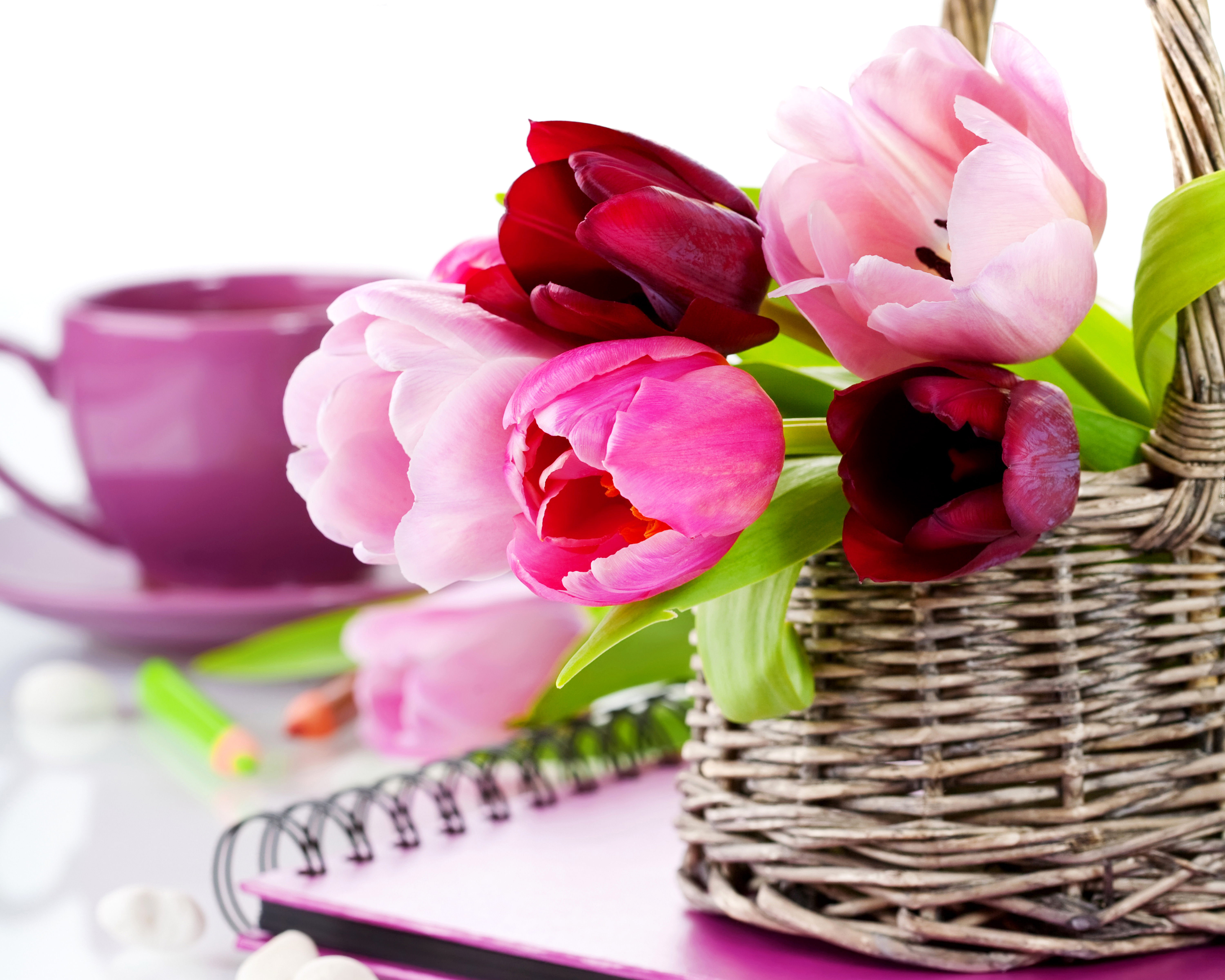 Edytor tapety: Kolorowe, Tulipany, Kosz