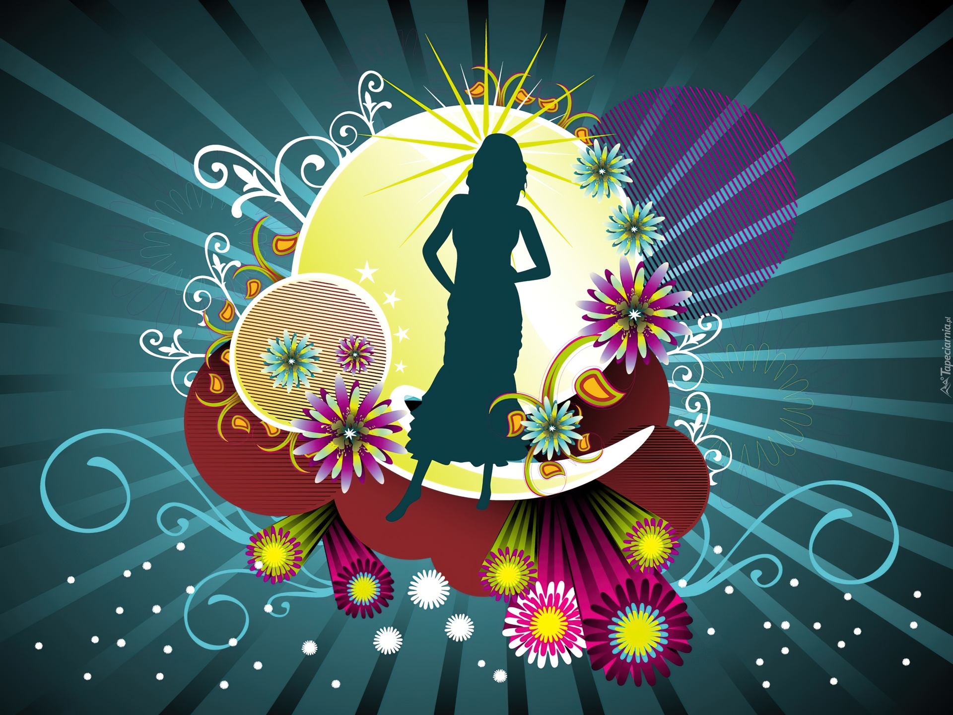 Edytor tapety: Kobieta, Żółta, Kula, Kolorowe, Kwiatki, Wzorki