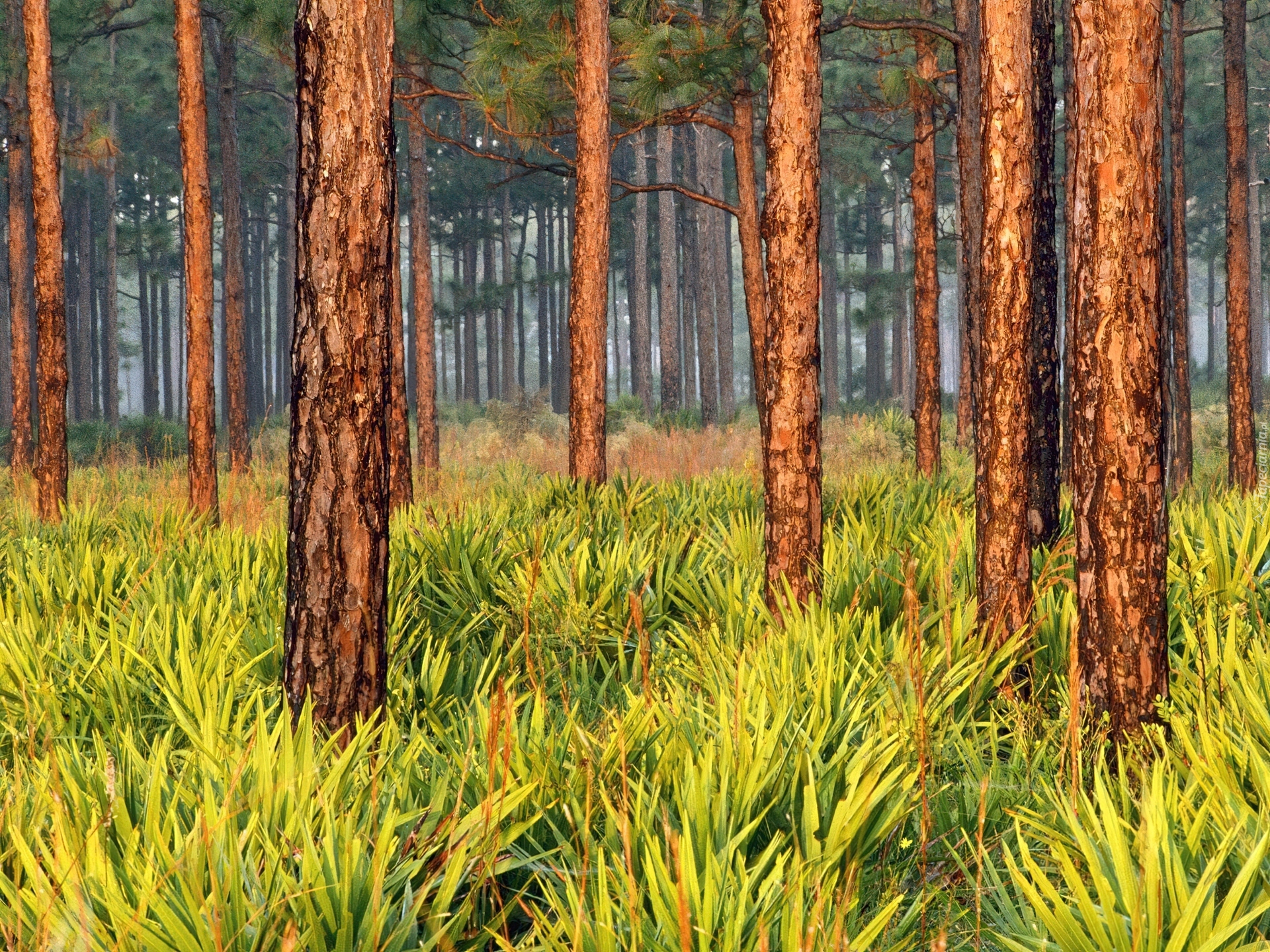 Edytor tapety: Las, Wysokie, Drzewa, Żółto, Zielone, Krzewinki