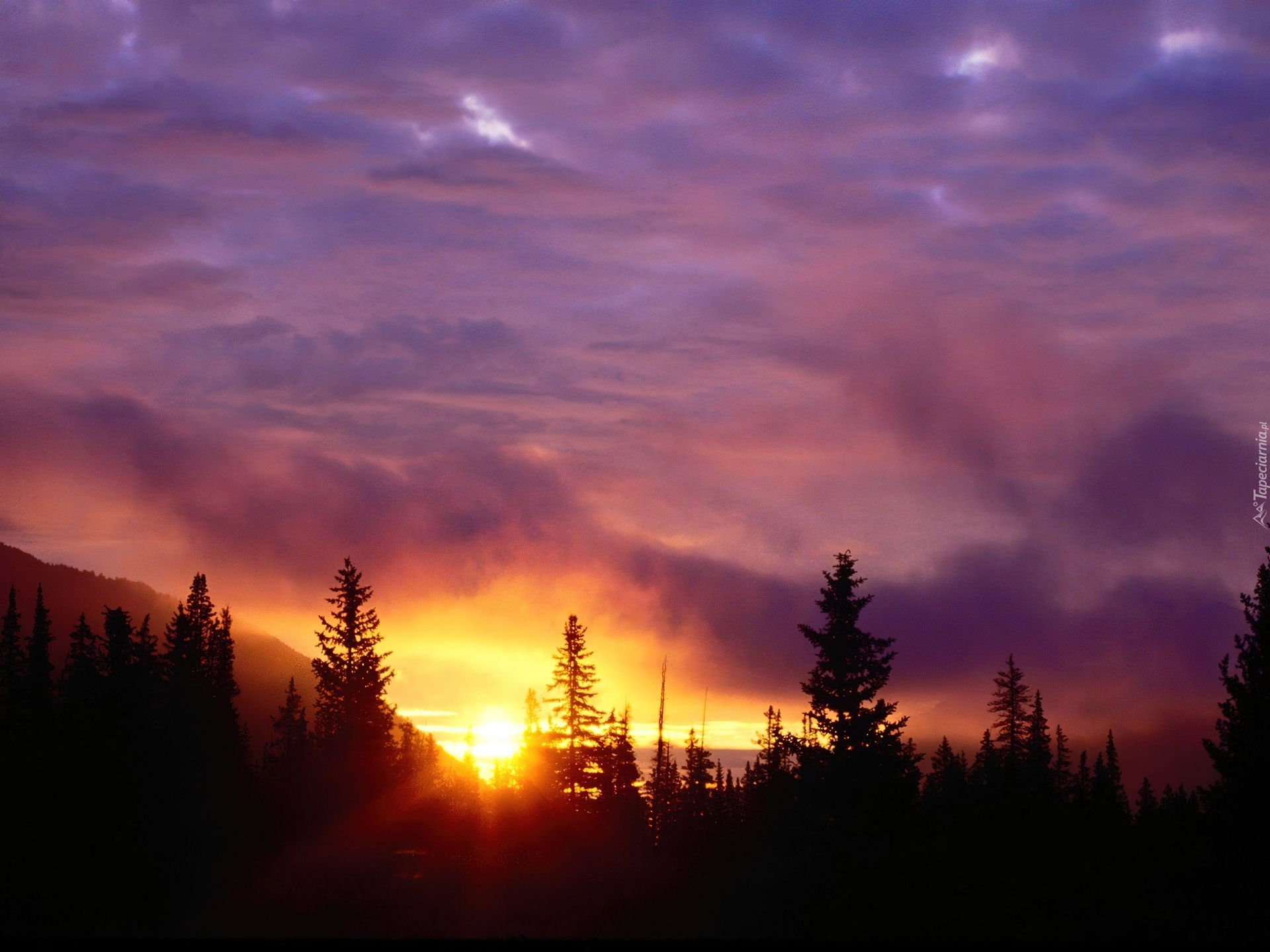 Edytor tapety: Ciemny, Las, Zachód, Słońca
