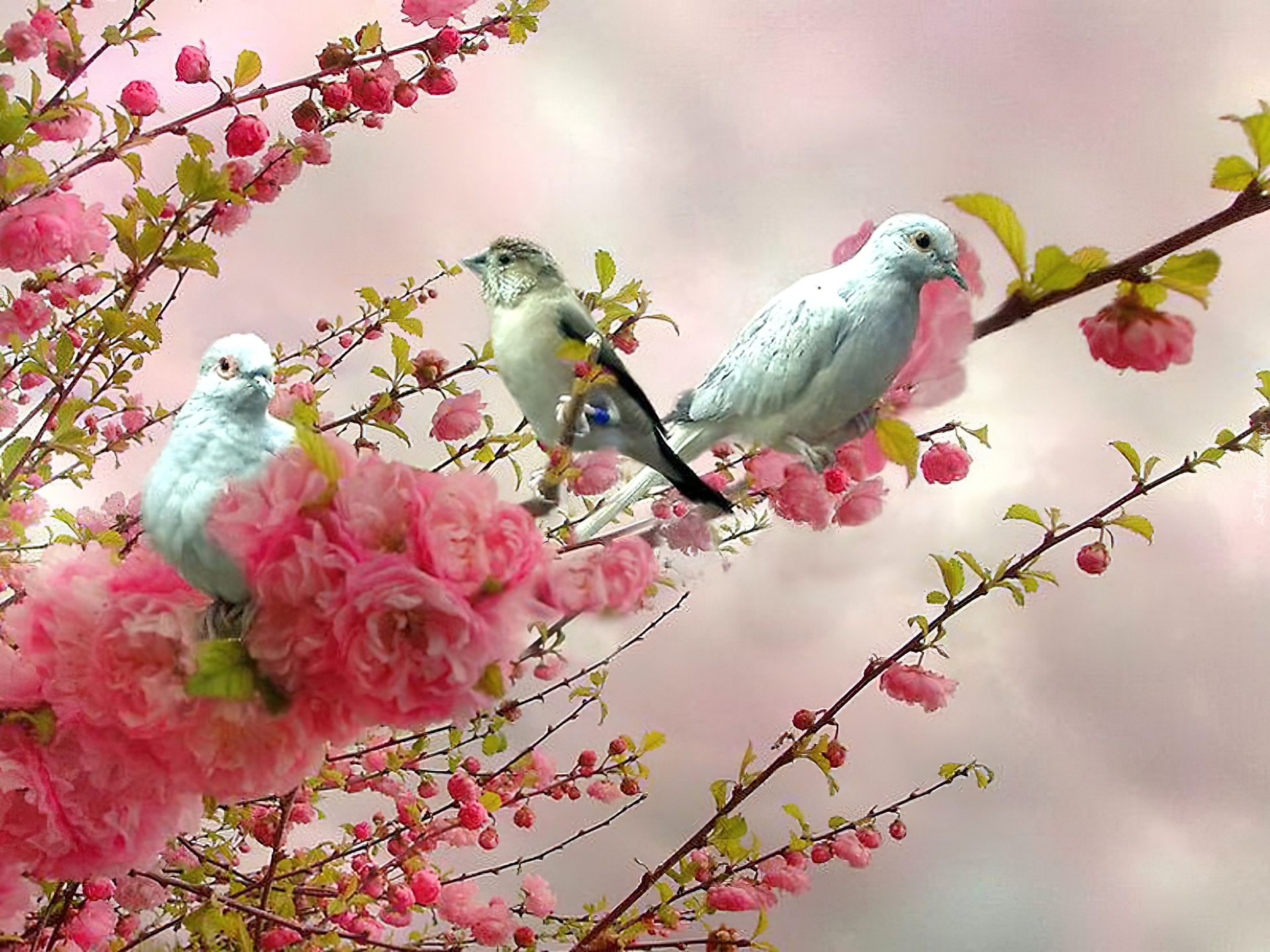Edytor tapety: Ptaki, Kwiaty, Gałąź