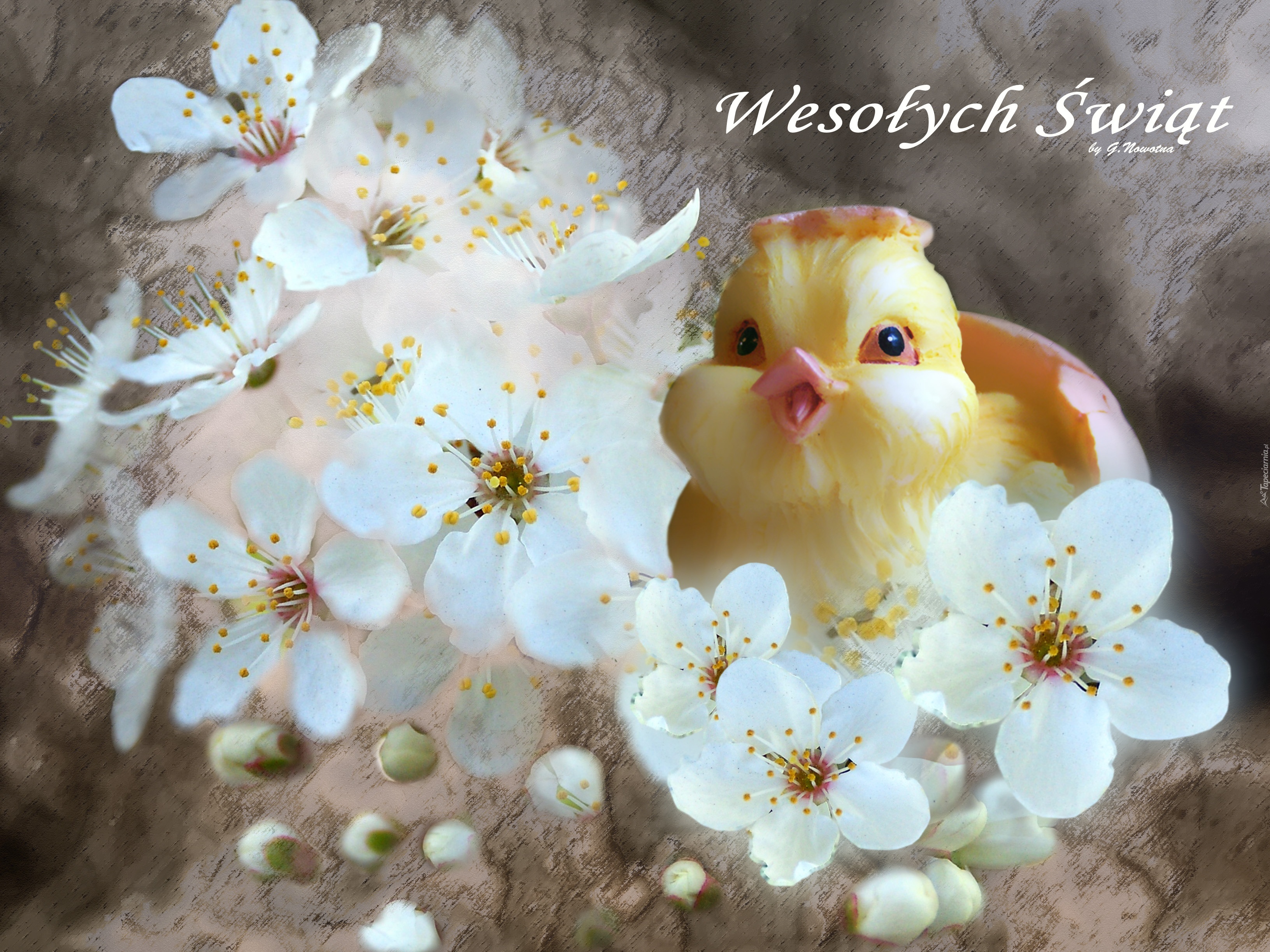 Edytor tapety: Kurczaczek, Kwiaty, Wielkanoc