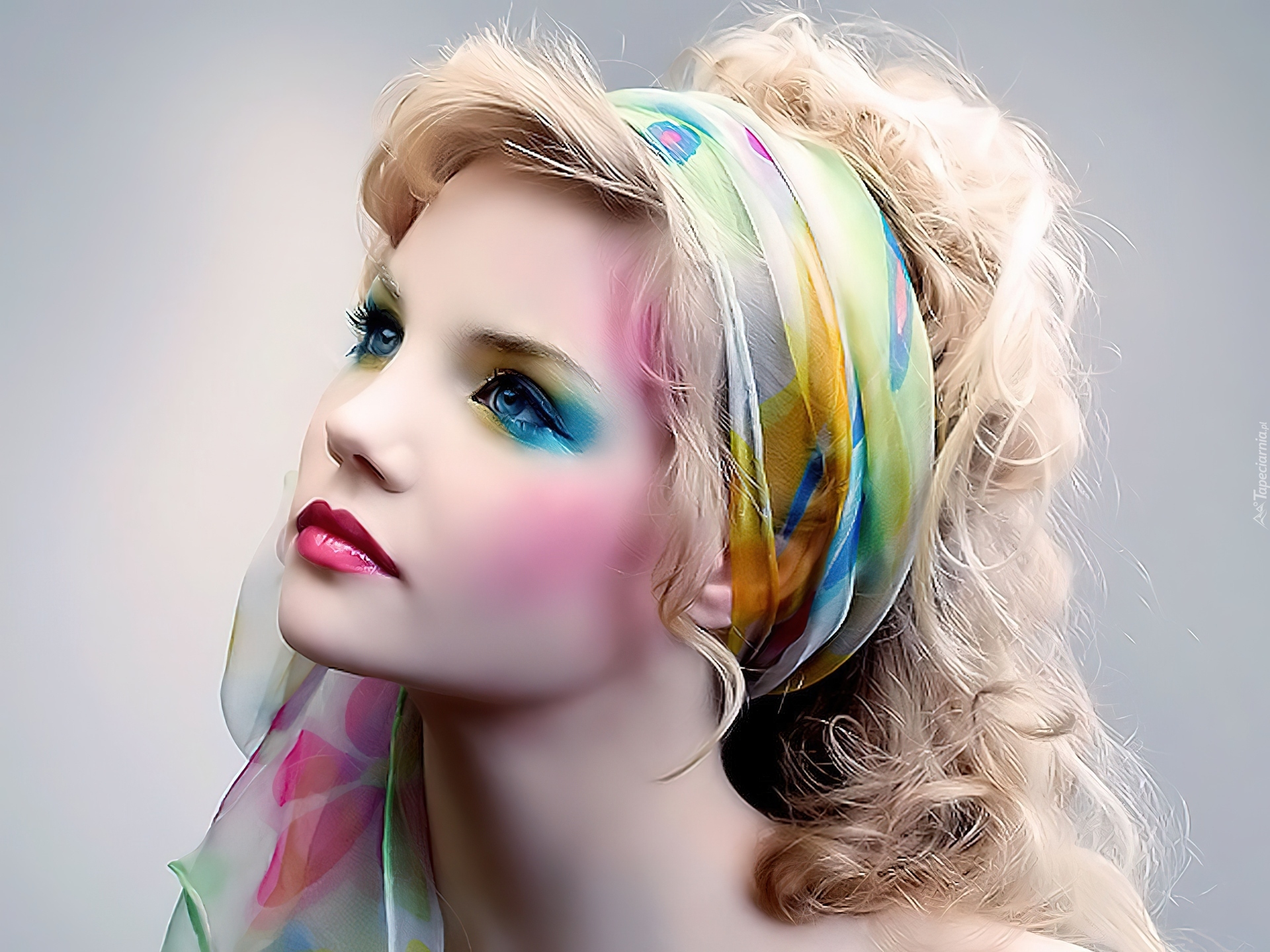 Edytor tapety: Kobieta, Twarz, Makijaż, Chusta